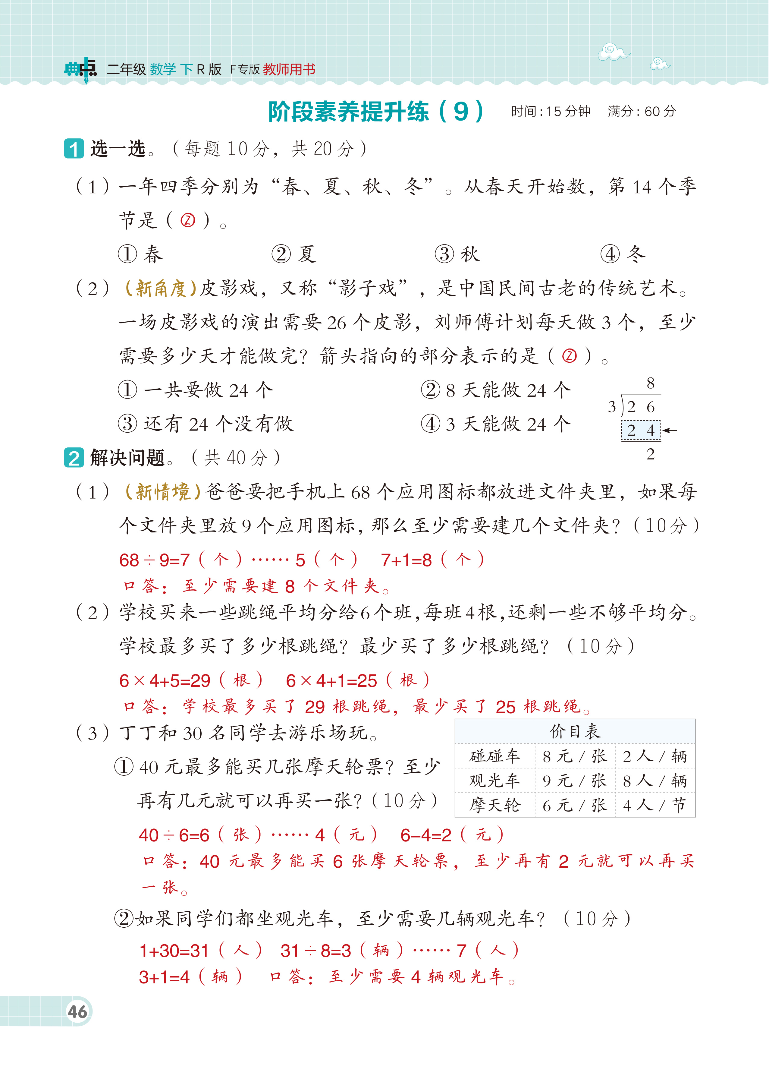 注:目前有些书本章节名称可能整理的还不是很完善,但都是按照顺序排列的,请同学们按照顺序仔细查找。练习册 2024年综合应用创新题典中点二年级数学下册人教版福建专版 答案主要是用来给同学们做完题方便对答案用的,请勿直接抄袭。