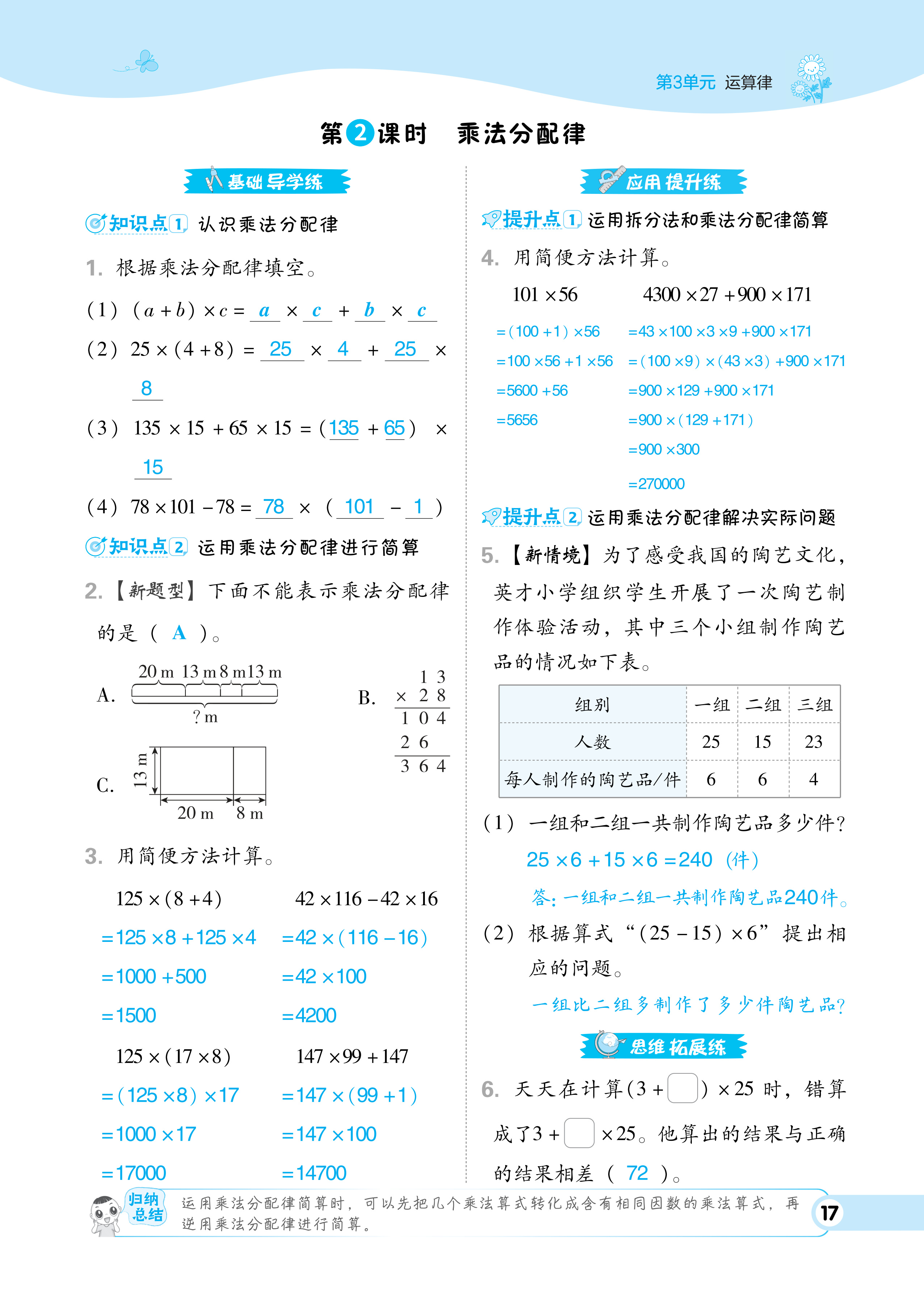注:目前有些书本章节名称可能整理的还不是很完善,但都是按照顺序排列的,请同学们按照顺序仔细查找。练习册 2024年综合应用创新题典中点四年级数学下册人教版福建专版 答案主要是用来给同学们做完题方便对答案用的,请勿直接抄袭。
