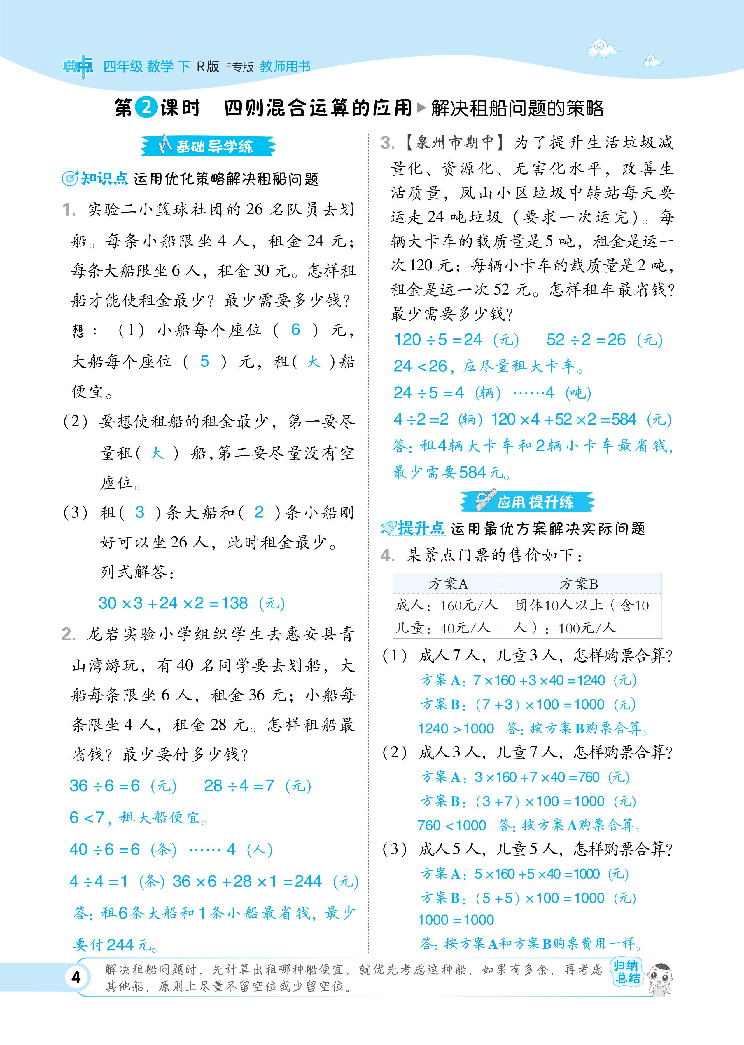《2024年综合应用创新题典中点四年级数学下册人教版福建专版》
