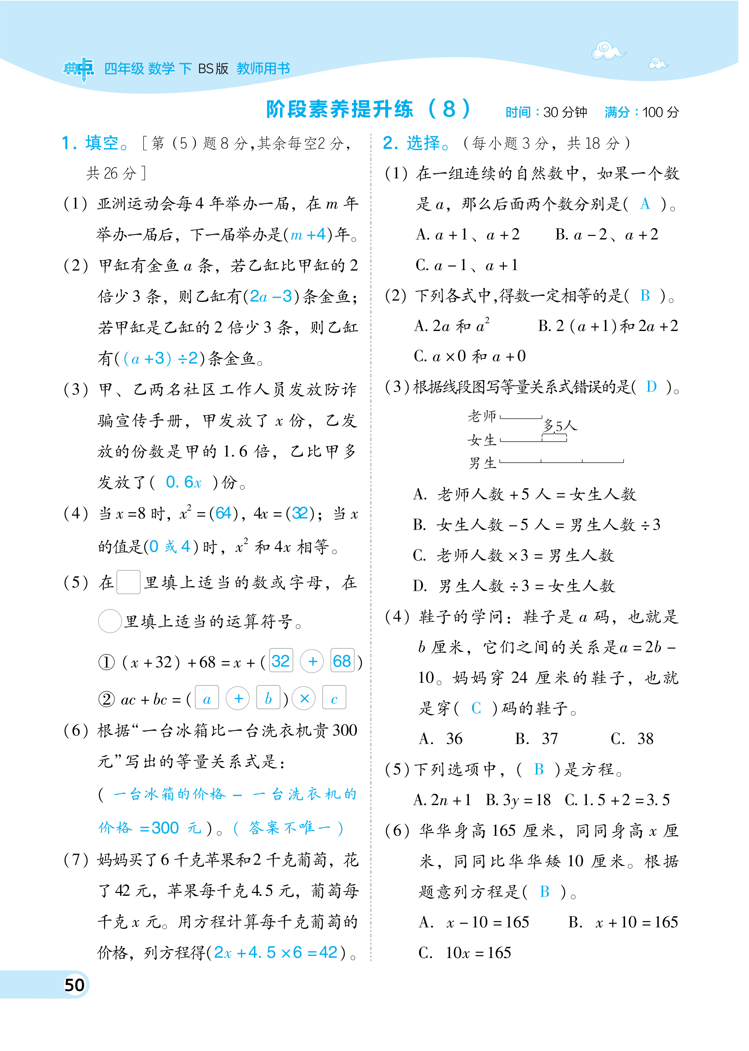 注:目前有些书本章节名称可能整理的还不是很完善,但都是按照顺序排列的,请同学们按照顺序仔细查找。练习册 2024年综合应用创新题典中点四年级数学下册北师大版福建专版 答案主要是用来给同学们做完题方便对答案用的,请勿直接抄袭。