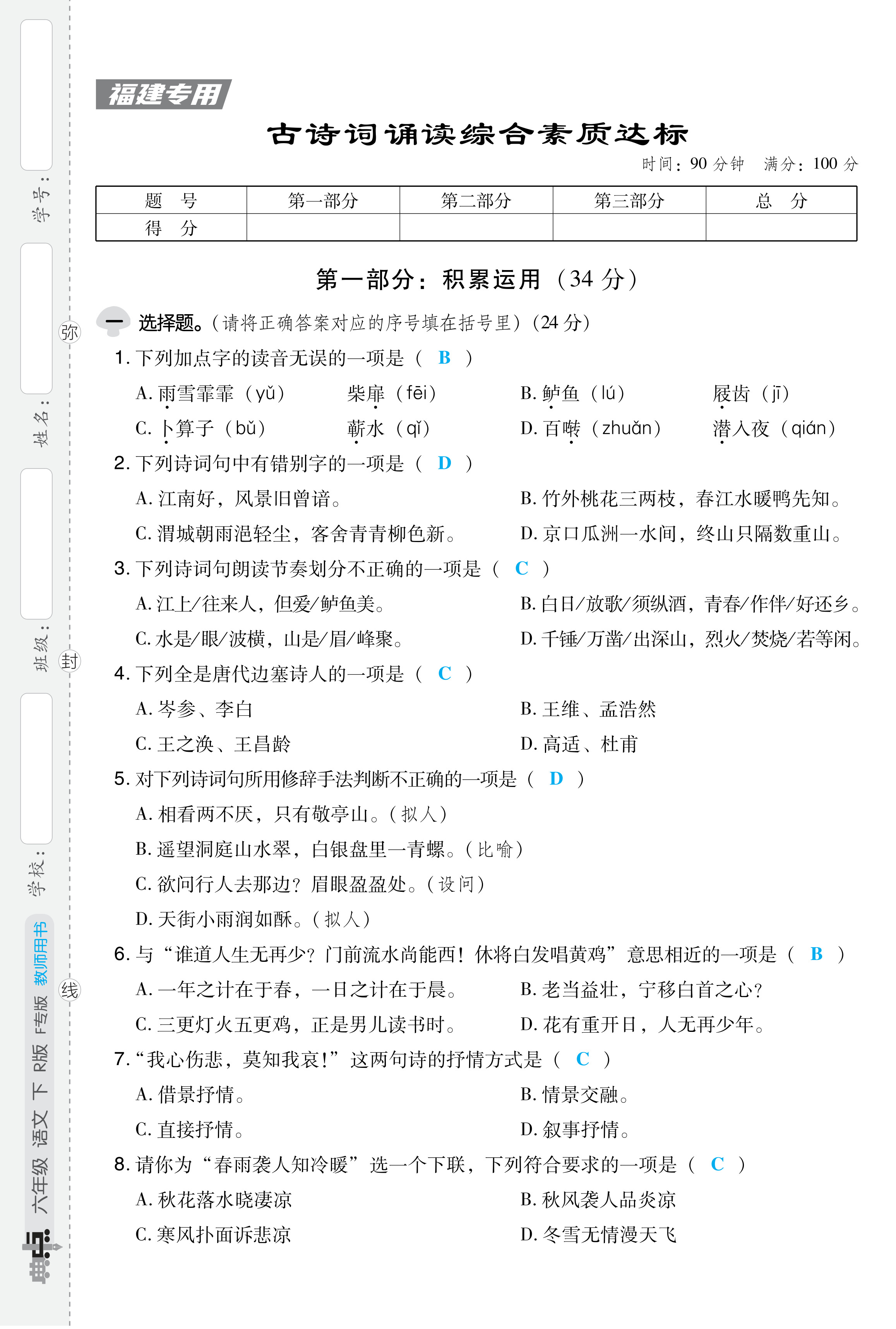 注:目前有些书本章节名称可能整理的还不是很完善,但都是按照顺序排列的,请同学们按照顺序仔细查找。练习册 2024年综合应用创新题典中点六年级语文下册人教版福建专版 答案主要是用来给同学们做完题方便对答案用的,请勿直接抄袭。