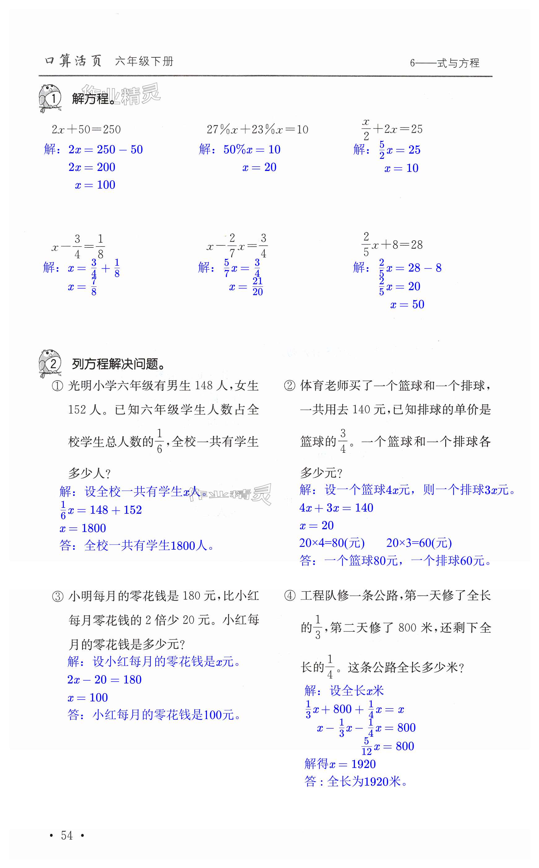 注:目前有些书本章节名称可能整理的还不是很完善,但都是按照顺序排列的,请同学们按照顺序仔细查找。练习册 2024年口算活页六年级数学下册人教版 答案主要是用来给同学们做完题方便对答案用的,请勿直接抄袭。