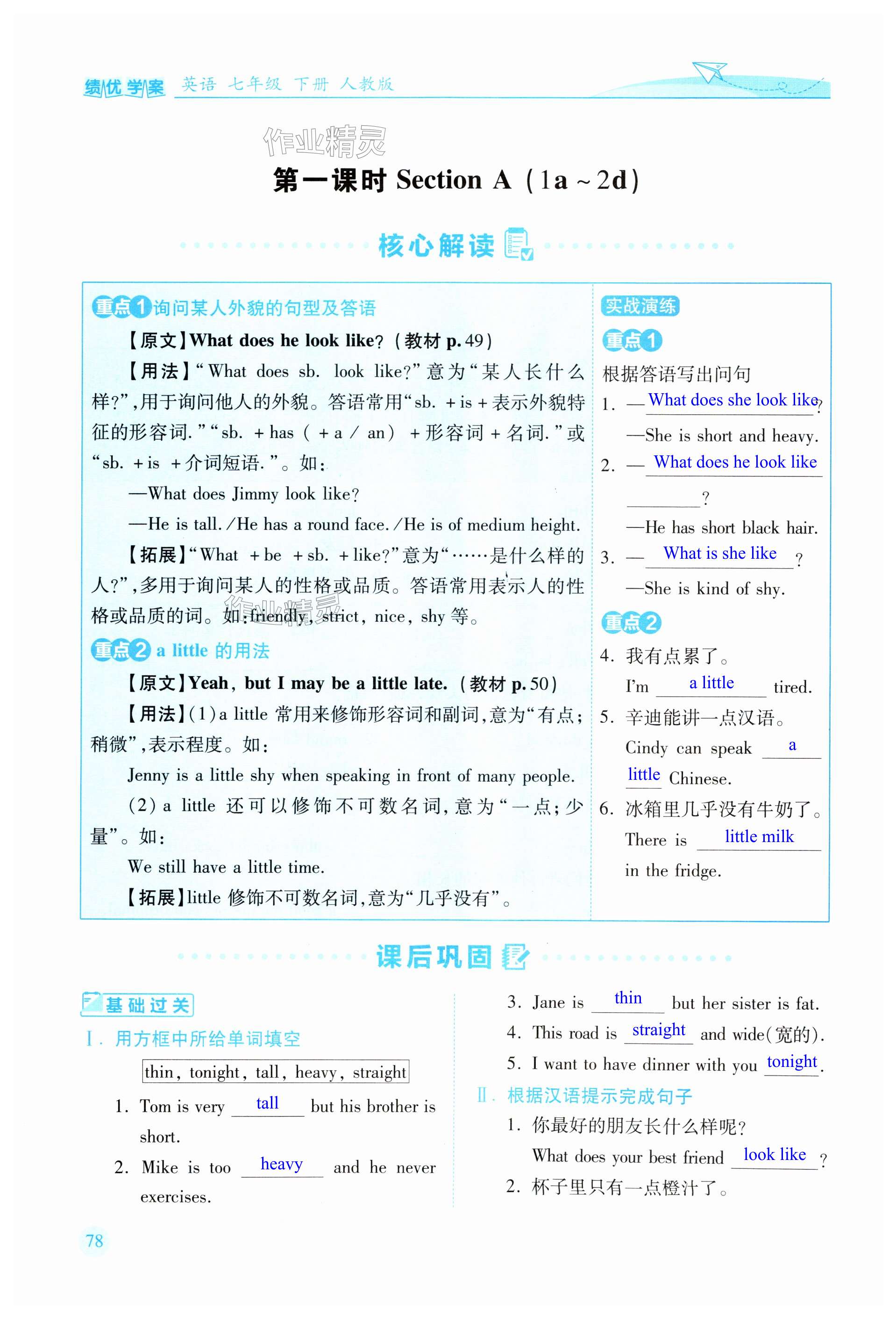 注:目前有些书本章节名称可能整理的还不是很完善,但都是按照顺序排列的,请同学们按照顺序仔细查找。练习册 2024年绩优学案七年级英语下册人教版 答案主要是用来给同学们做完题方便对答案用的,请勿直接抄袭。