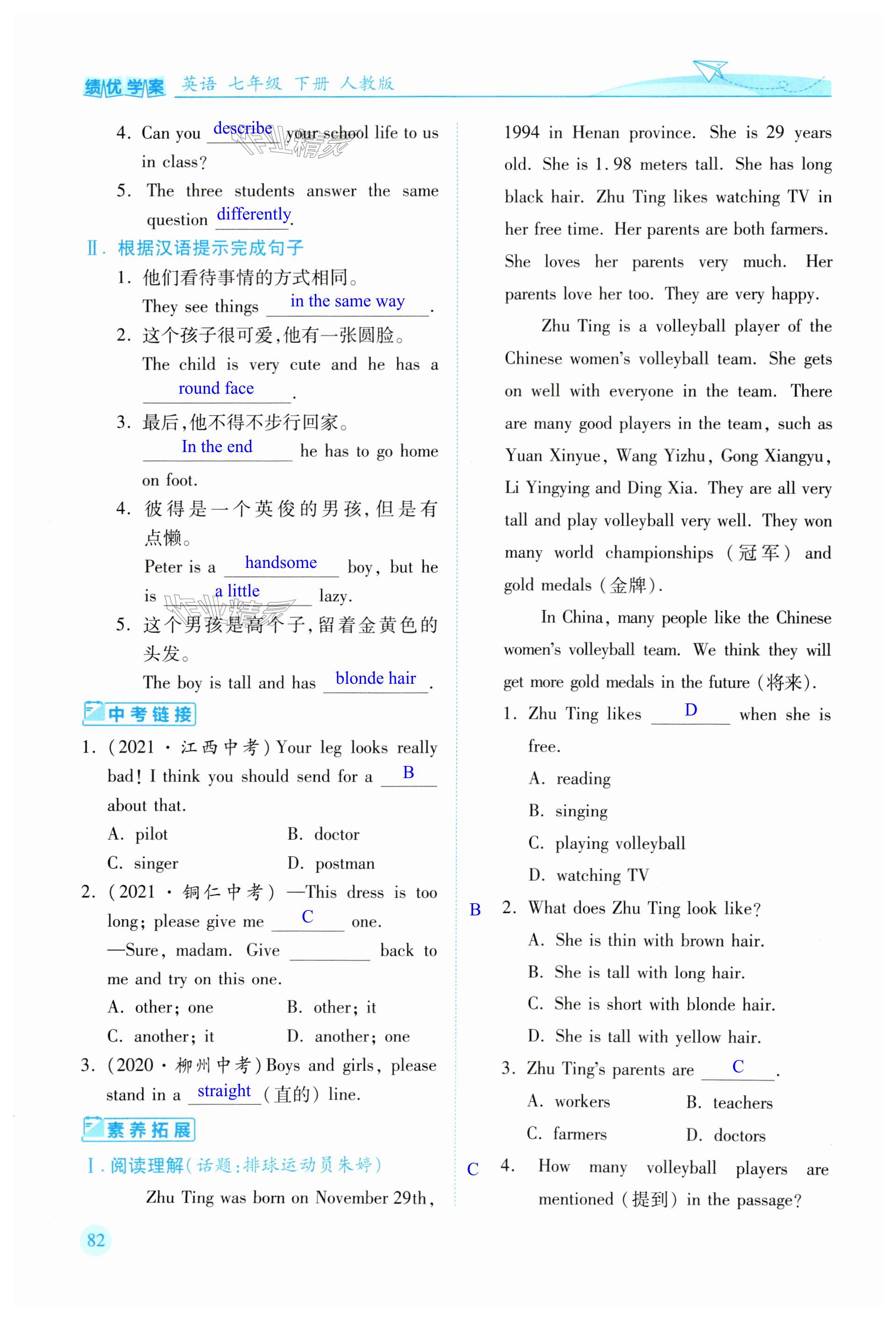 注:目前有些书本章节名称可能整理的还不是很完善,但都是按照顺序排列的,请同学们按照顺序仔细查找。练习册 2024年绩优学案七年级英语下册人教版 答案主要是用来给同学们做完题方便对答案用的,请勿直接抄袭。