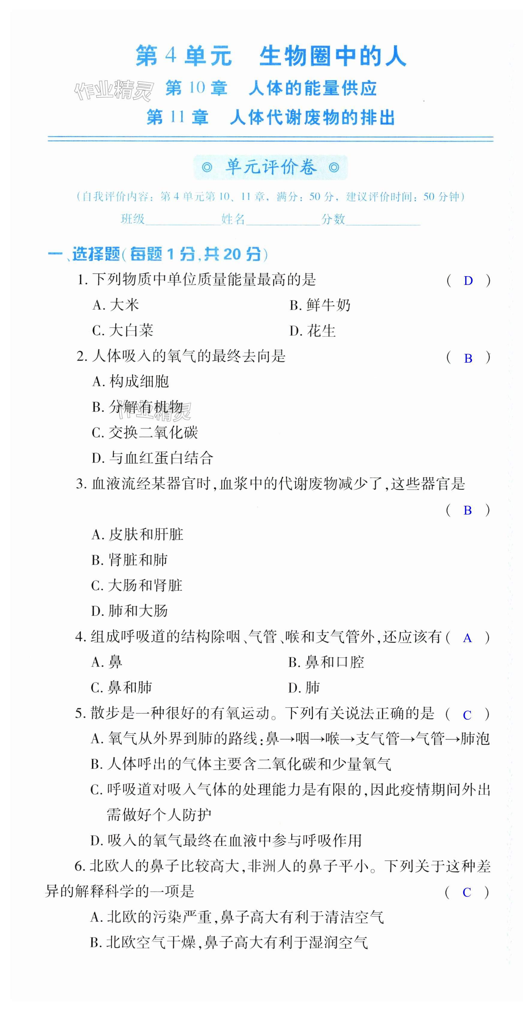 注:目前有些书本章节名称可能整理的还不是很完善,但都是按照顺序排列的,请同学们按照顺序仔细查找。练习册 2024年基础训练大象出版社七年级生物下册北师大版 答案主要是用来给同学们做完题方便对答案用的,请勿直接抄袭。