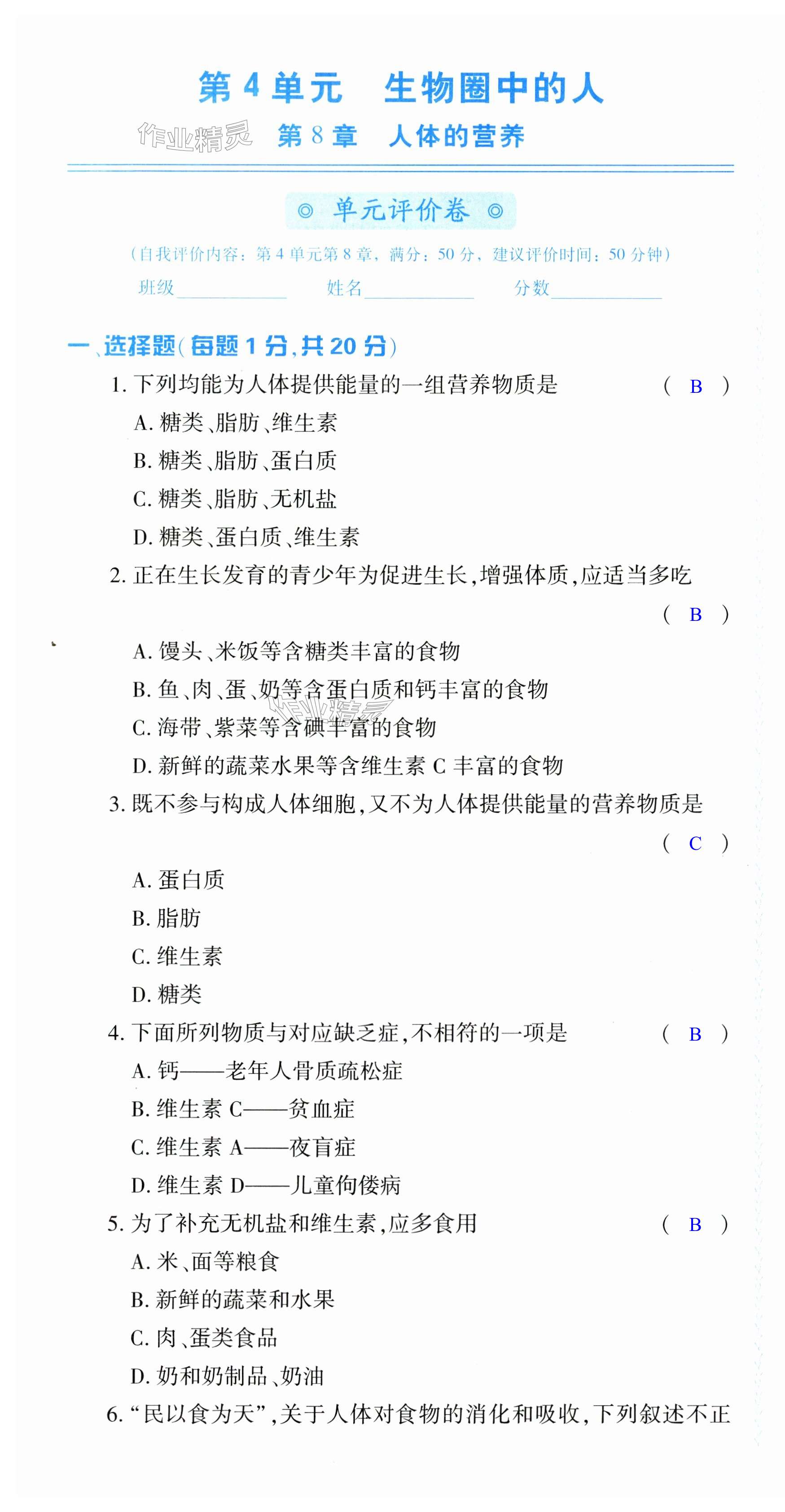 注:目前有些书本章节名称可能整理的还不是很完善,但都是按照顺序排列的,请同学们按照顺序仔细查找。练习册 2024年基础训练大象出版社七年级生物下册北师大版 答案主要是用来给同学们做完题方便对答案用的,请勿直接抄袭。