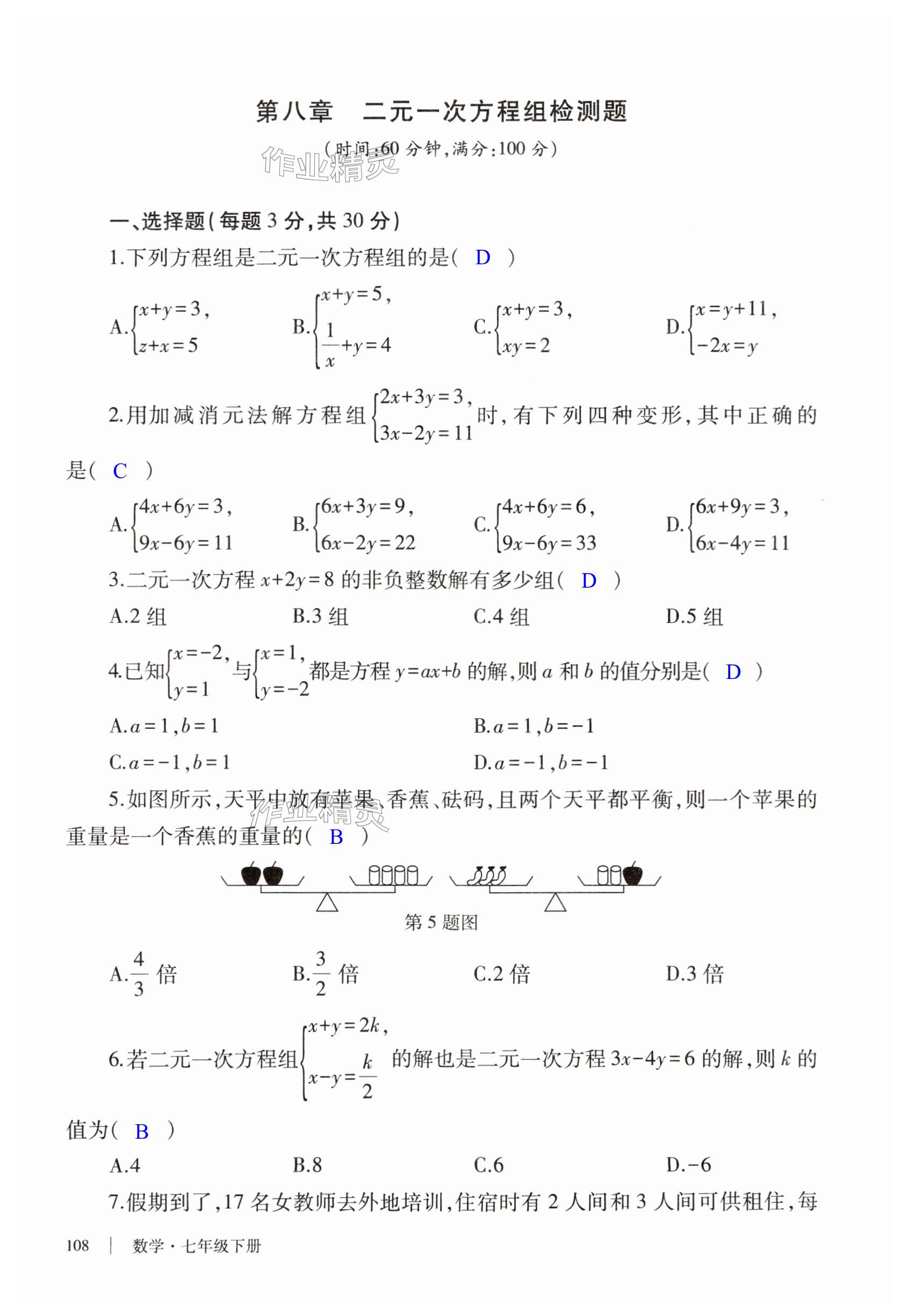 注:目前有些书本章节名称可能整理的还不是很完善,但都是按照顺序排列的,请同学们按照顺序仔细查找。练习册 2024年自主学习指导课程与测试七年级数学下册人教版 答案主要是用来给同学们做完题方便对答案用的,请勿直接抄袭。