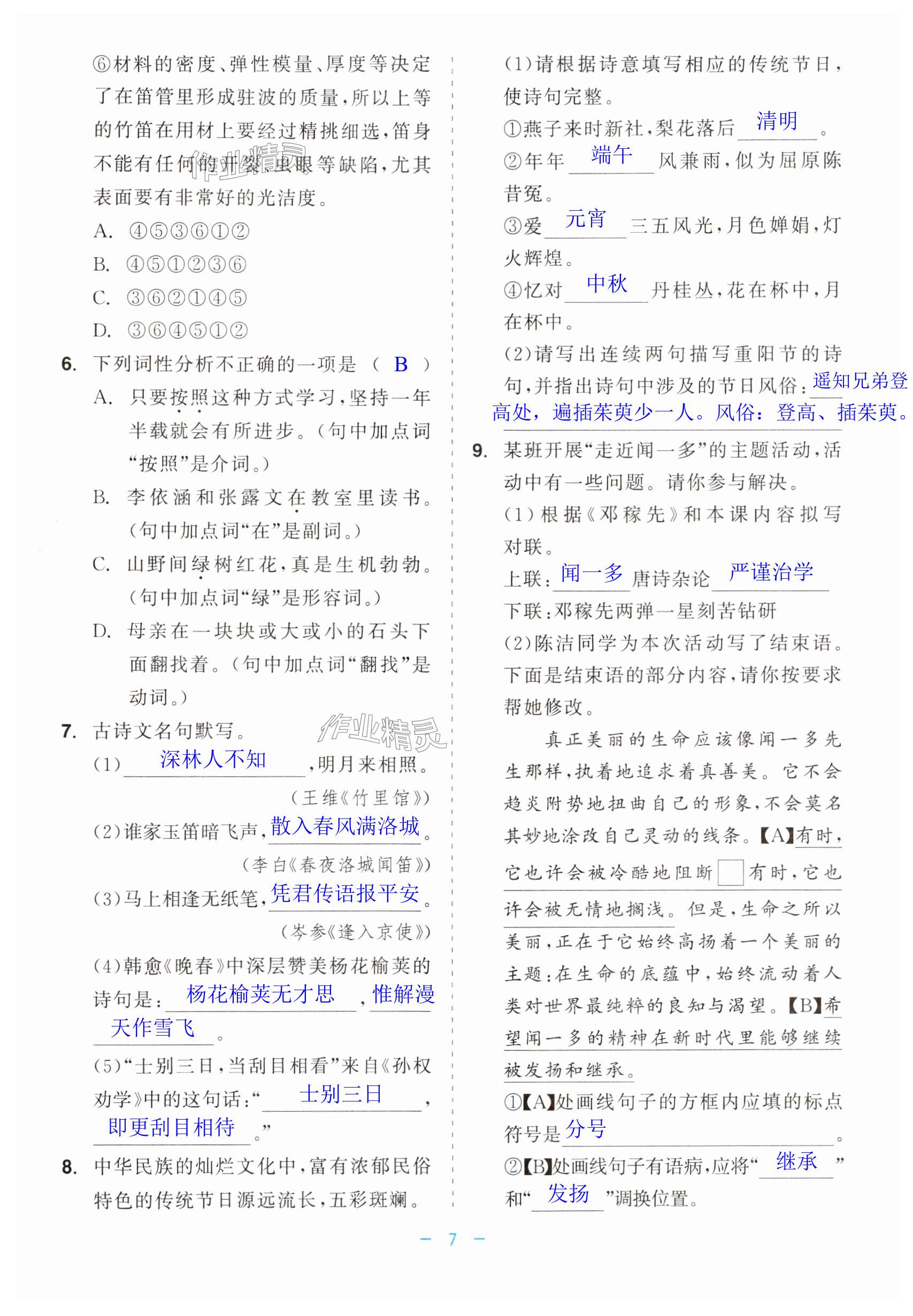 注:目前有些书本章节名称可能整理的还不是很完善,但都是按照顺序排列的,请同学们按照顺序仔细查找。练习册 2024年精彩练习就练这一本七年级语文下册人教版评议教辅 答案主要是用来给同学们做完题方便对答案用的,请勿直接抄袭。
