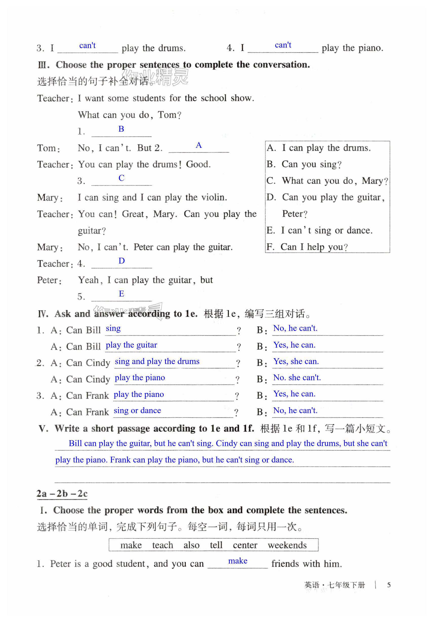 注:目前有些书本章节名称可能整理的还不是很完善,但都是按照顺序排列的,请同学们按照顺序仔细查找。练习册 2024年自主学习指导课程与测试七年级英语下册人教版 答案主要是用来给同学们做完题方便对答案用的,请勿直接抄袭。