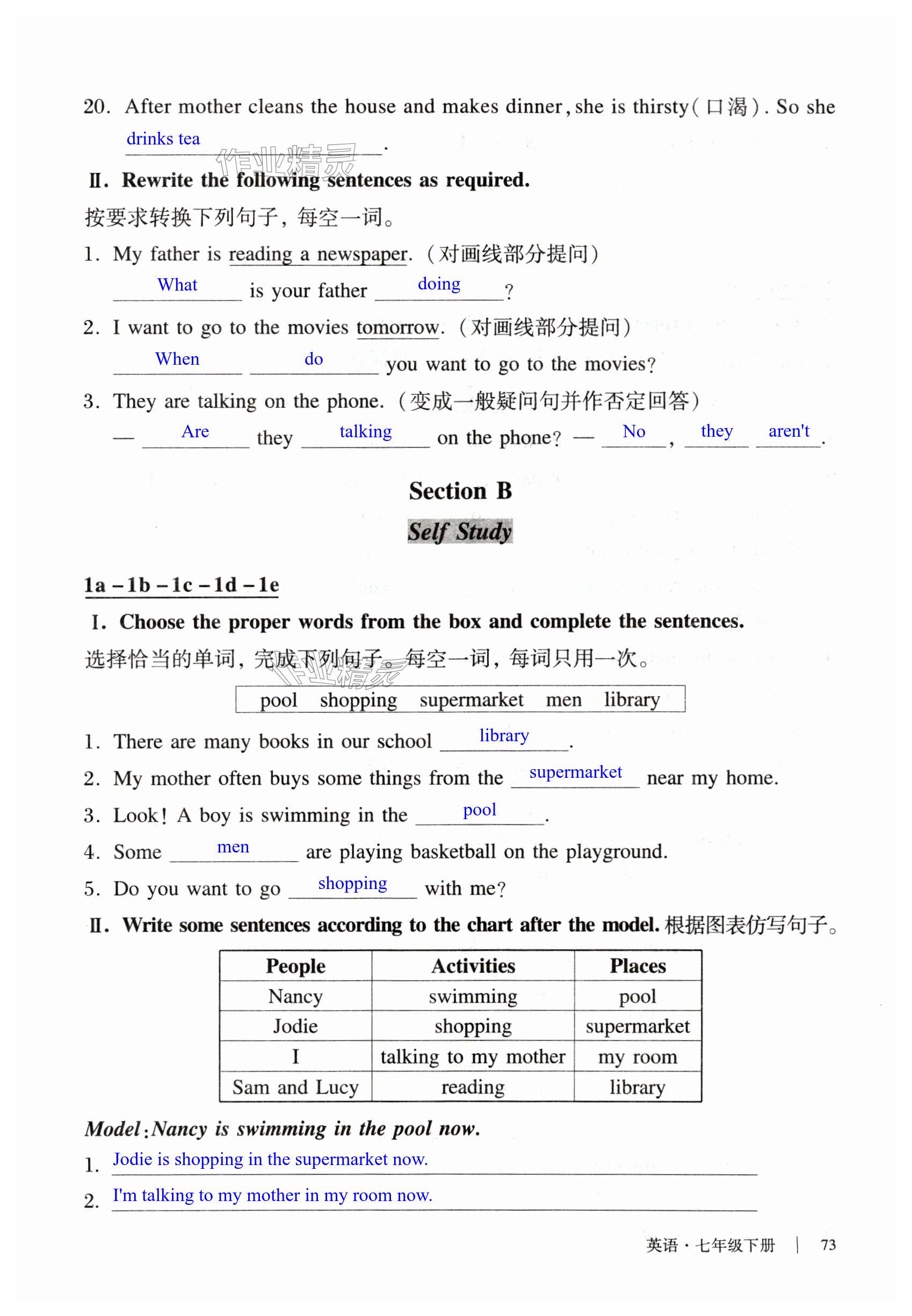 注:目前有些书本章节名称可能整理的还不是很完善,但都是按照顺序排列的,请同学们按照顺序仔细查找。练习册 2024年自主学习指导课程与测试七年级英语下册人教版 答案主要是用来给同学们做完题方便对答案用的,请勿直接抄袭。