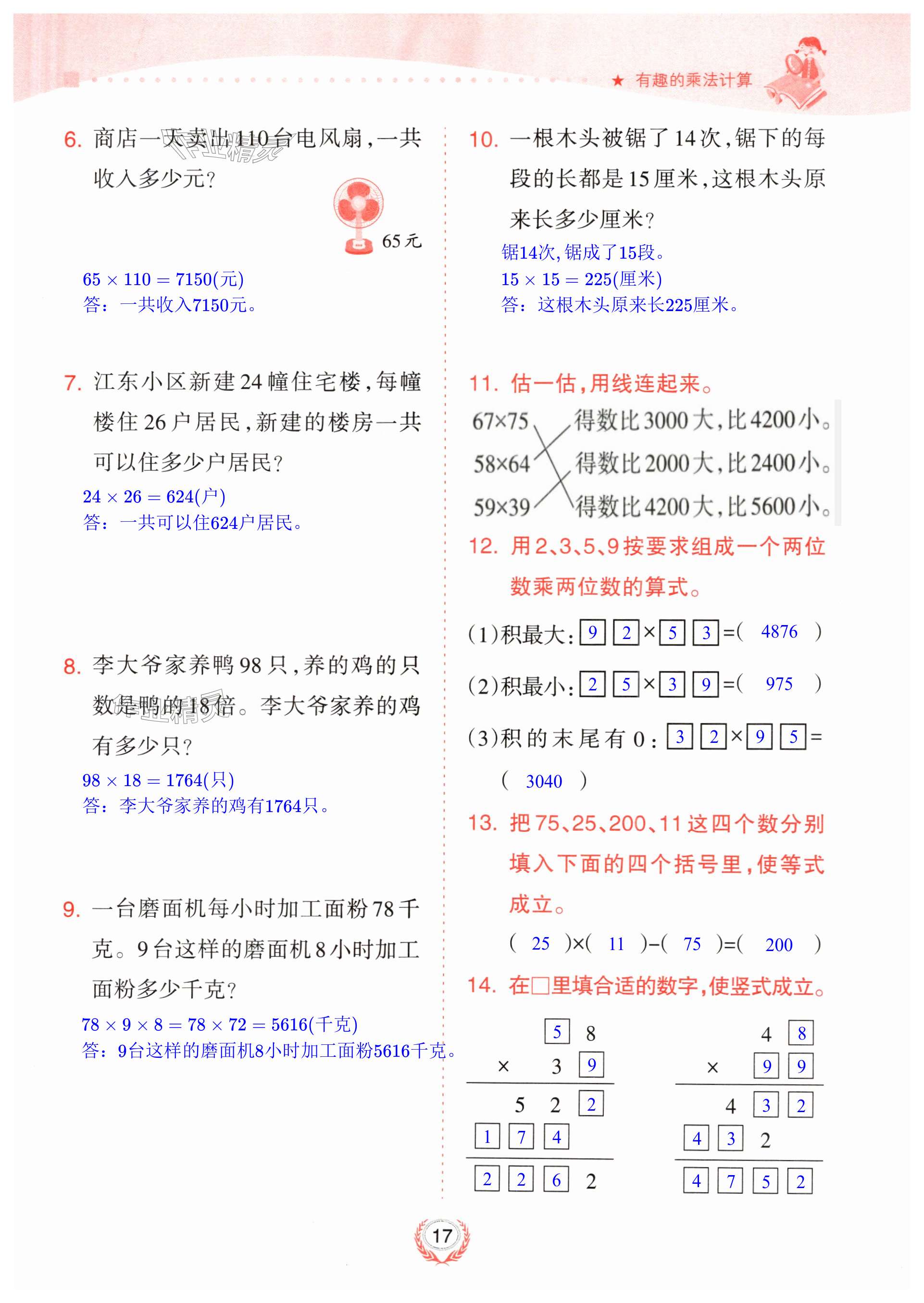 注:目前有些书本章节名称可能整理的还不是很完善,但都是按照顺序排列的,请同学们按照顺序仔细查找。练习册 2024年金椰风新课程同步练三年级数学下册苏教版 答案主要是用来给同学们做完题方便对答案用的,请勿直接抄袭。