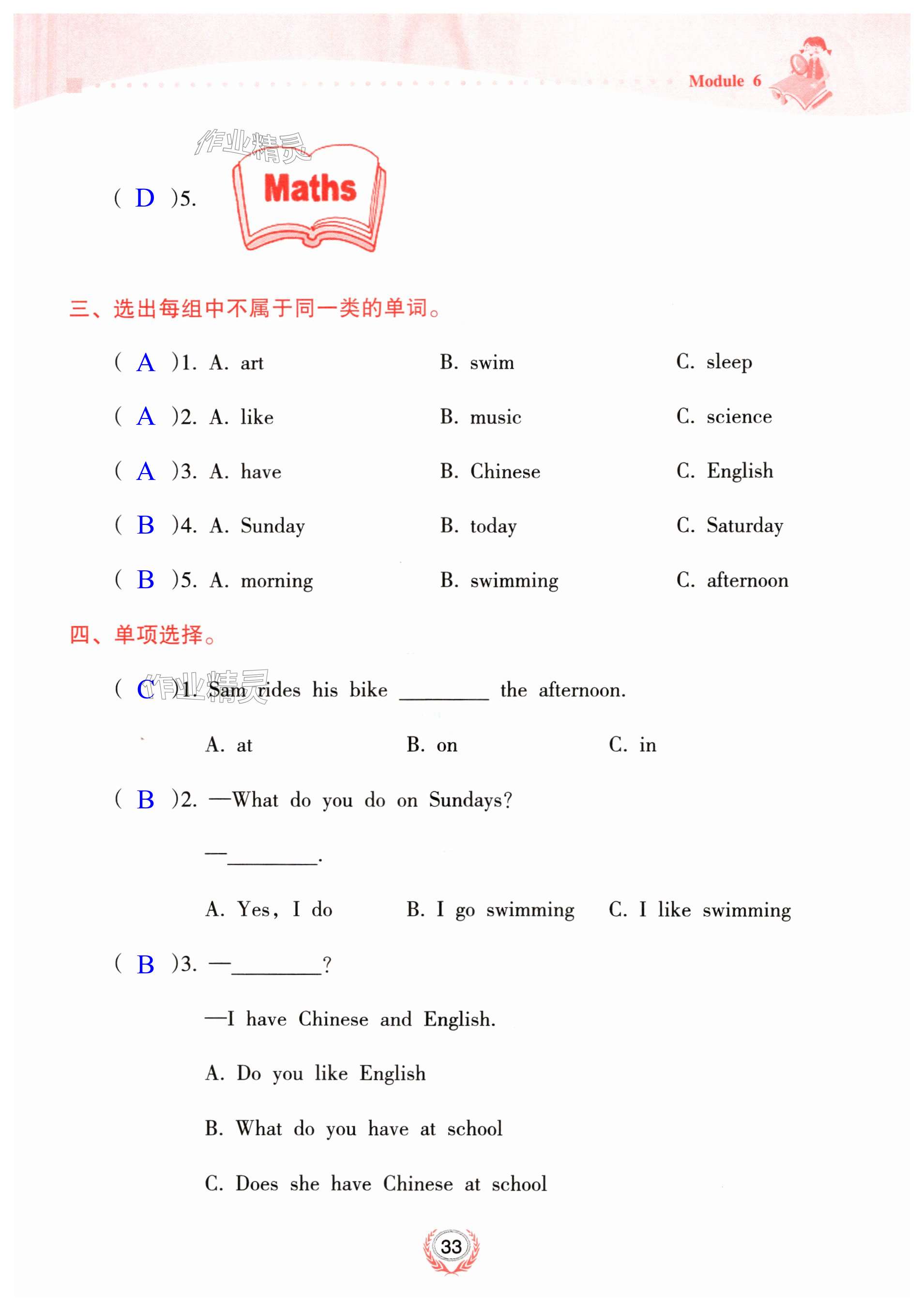 注:目前有些书本章节名称可能整理的还不是很完善,但都是按照顺序排列的,请同学们按照顺序仔细查找。练习册 2024年金椰风新课程同步练三年级英语下册外研版 答案主要是用来给同学们做完题方便对答案用的,请勿直接抄袭。