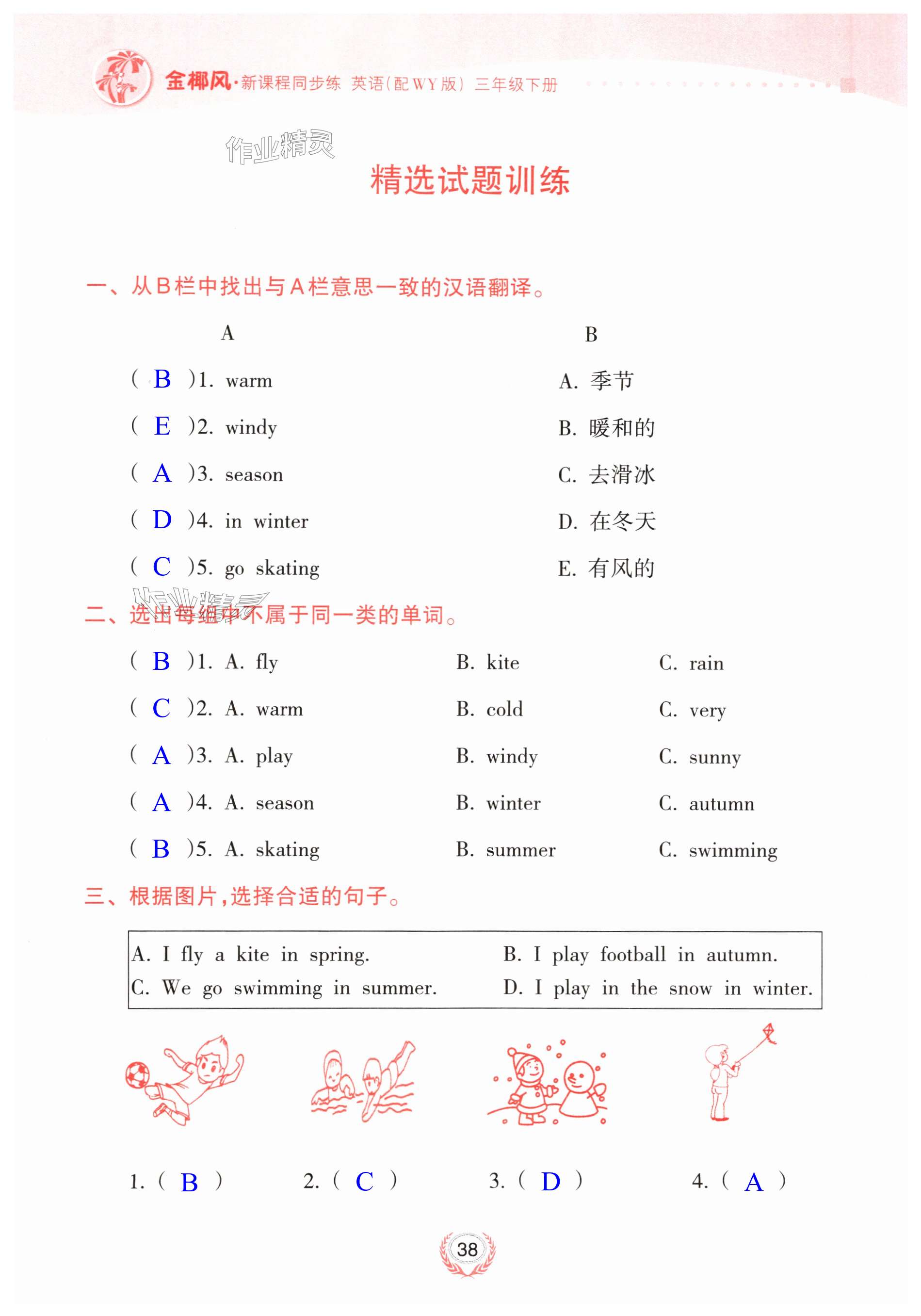注:目前有些书本章节名称可能整理的还不是很完善,但都是按照顺序排列的,请同学们按照顺序仔细查找。练习册 2024年金椰风新课程同步练三年级英语下册外研版 答案主要是用来给同学们做完题方便对答案用的,请勿直接抄袭。