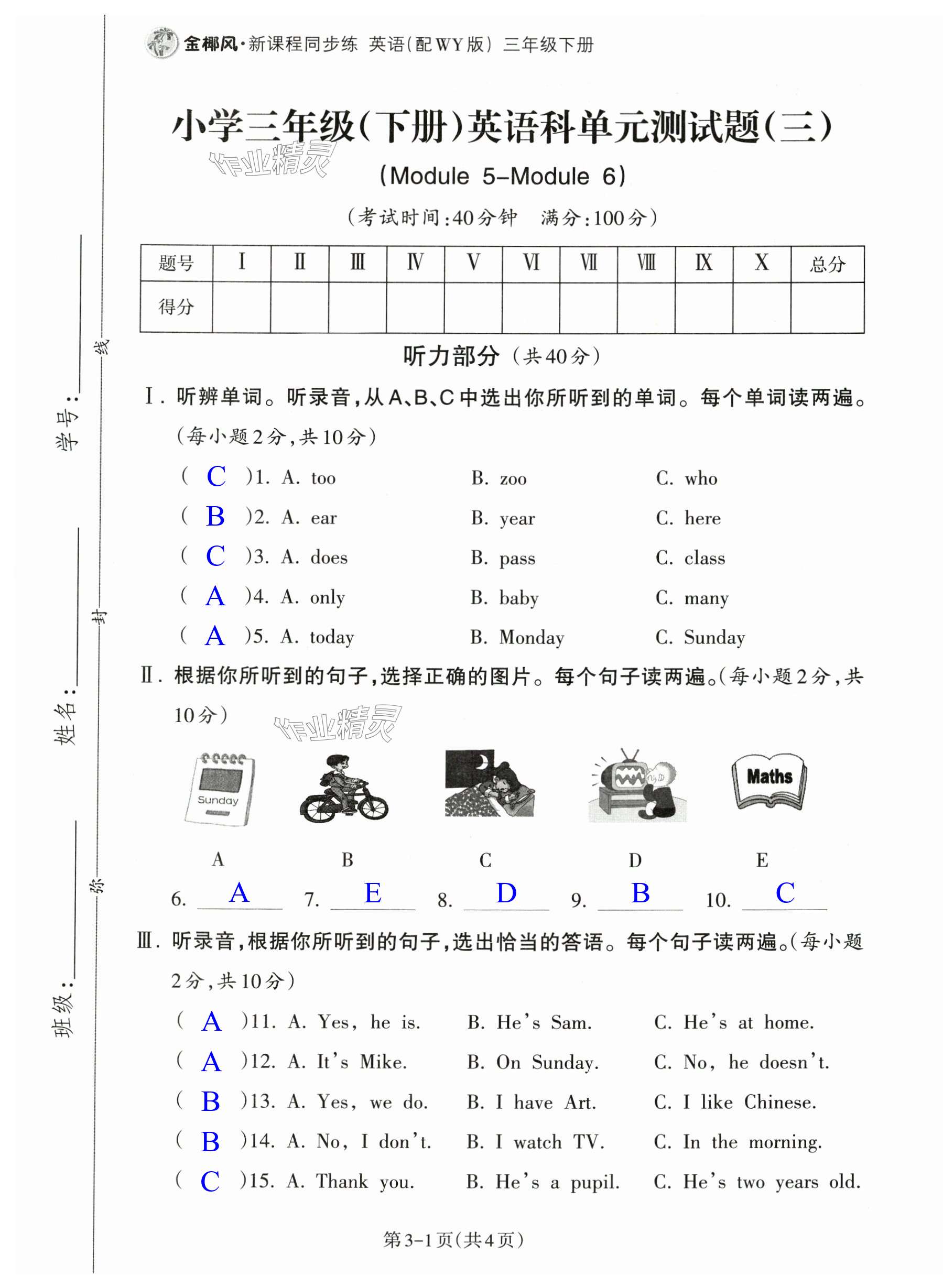 注:目前有些书本章节名称可能整理的还不是很完善,但都是按照顺序排列的,请同学们按照顺序仔细查找。练习册 2024年金椰风新课程同步练三年级英语下册外研版 答案主要是用来给同学们做完题方便对答案用的,请勿直接抄袭。