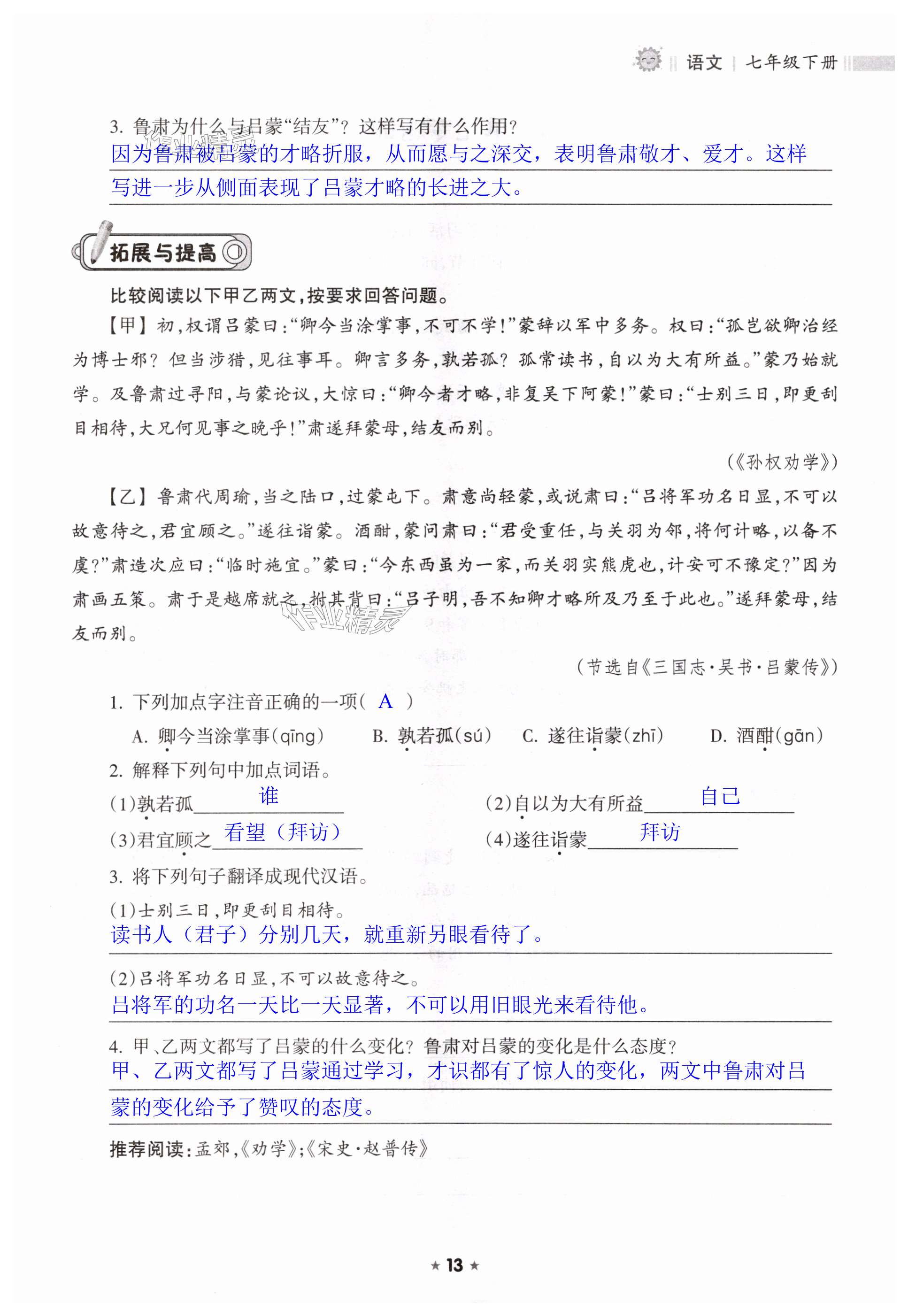 注:目前有些书本章节名称可能整理的还不是很完善,但都是按照顺序排列的,请同学们按照顺序仔细查找。练习册 2024年新课程课堂同步练习册七年级语文下册人教版 答案主要是用来给同学们做完题方便对答案用的,请勿直接抄袭。