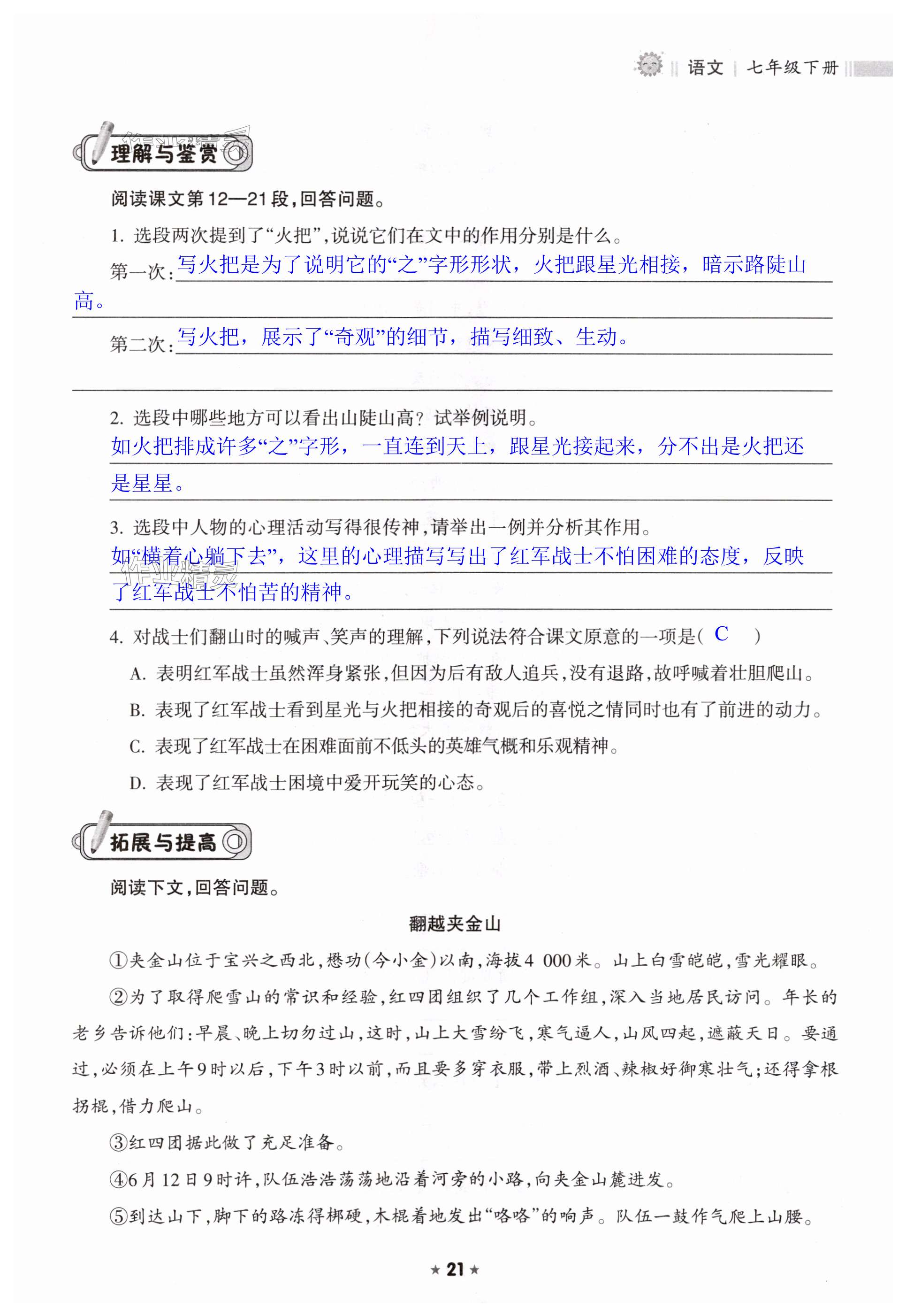 注:目前有些书本章节名称可能整理的还不是很完善,但都是按照顺序排列的,请同学们按照顺序仔细查找。练习册 2024年新课程课堂同步练习册七年级语文下册人教版 答案主要是用来给同学们做完题方便对答案用的,请勿直接抄袭。