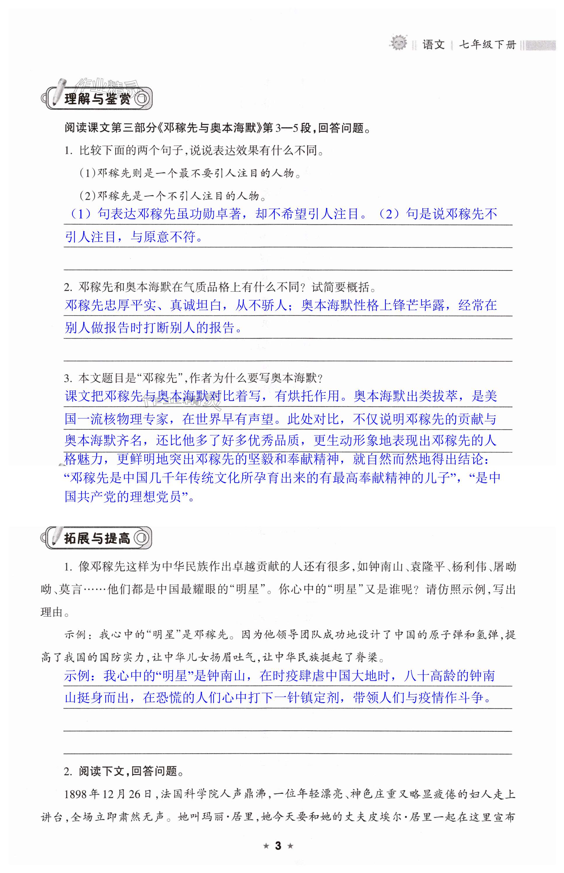 注:目前有些书本章节名称可能整理的还不是很完善,但都是按照顺序排列的,请同学们按照顺序仔细查找。练习册 2024年新课程课堂同步练习册七年级语文下册人教版 答案主要是用来给同学们做完题方便对答案用的,请勿直接抄袭。