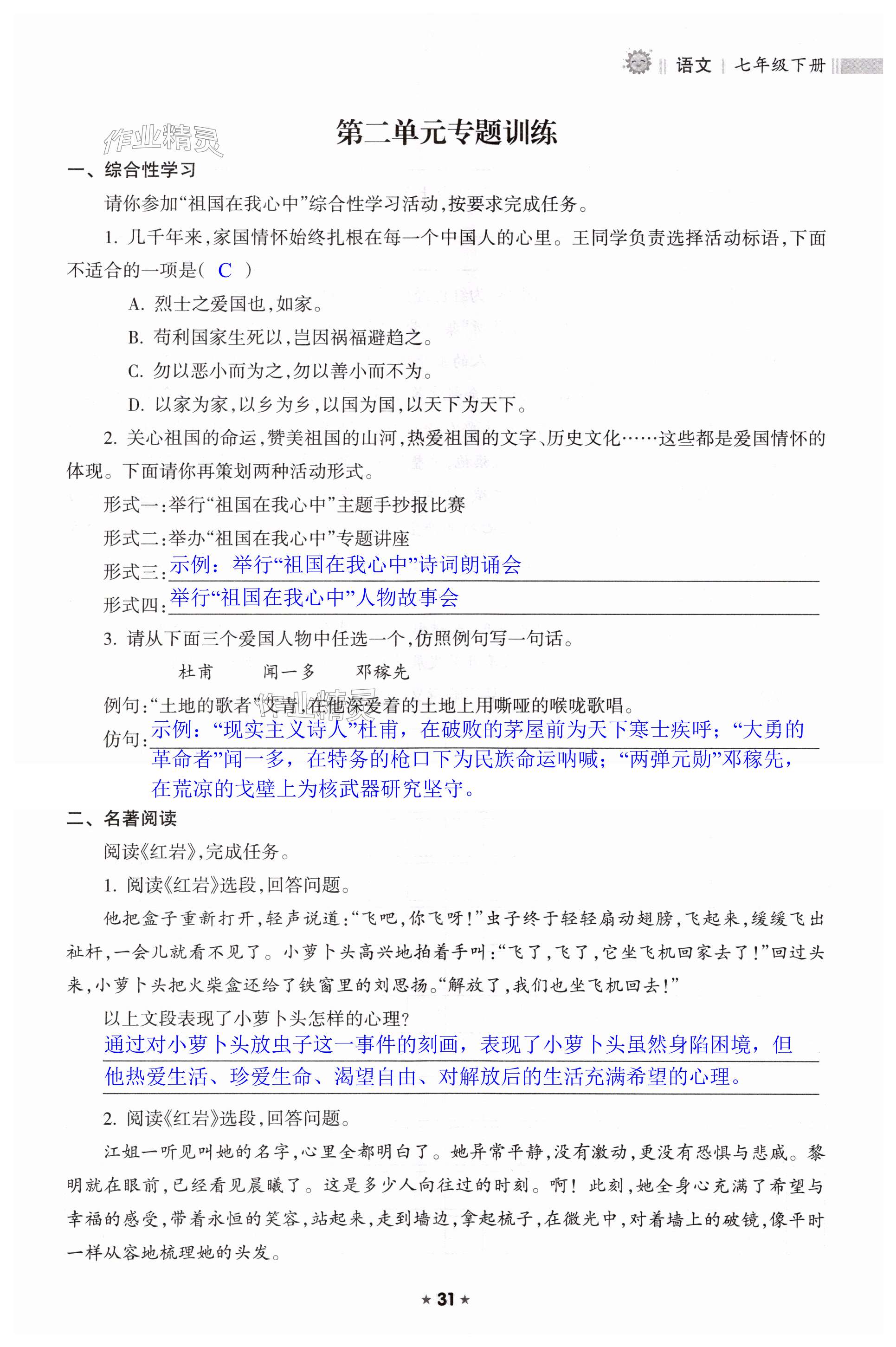 注:目前有些书本章节名称可能整理的还不是很完善,但都是按照顺序排列的,请同学们按照顺序仔细查找。练习册 2024年新课程课堂同步练习册七年级语文下册人教版 答案主要是用来给同学们做完题方便对答案用的,请勿直接抄袭。
