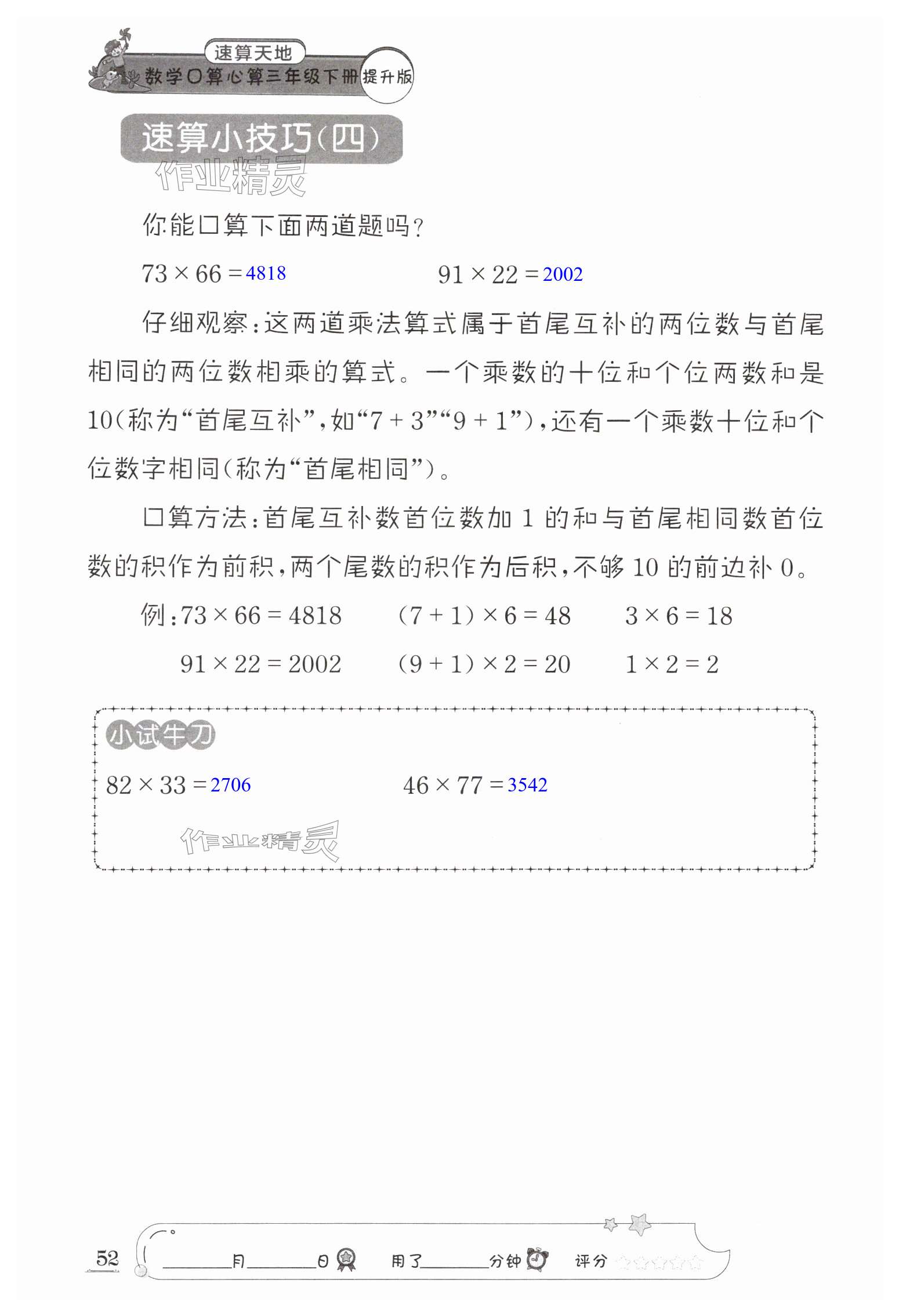 《2024年速算天地数学口算心算三年级下册苏教版提升版》