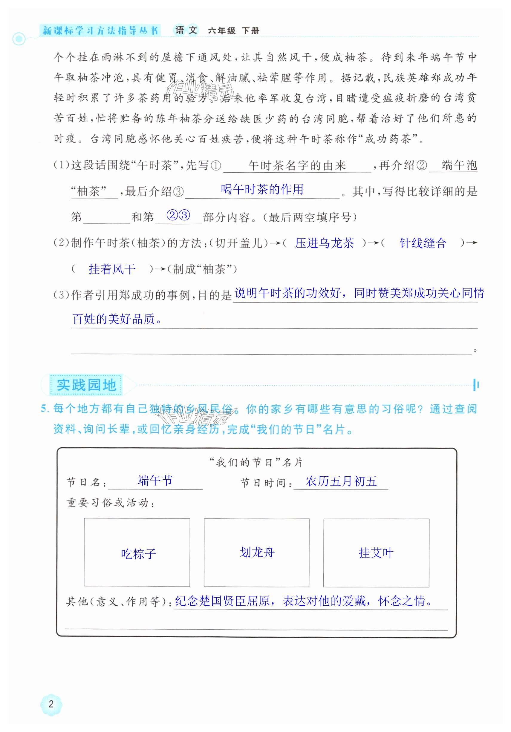注:目前有些书本章节名称可能整理的还不是很完善,但都是按照顺序排列的,请同学们按照顺序仔细查找。练习册 2024年新课标学习方法指导丛书六年级语文下册人教版 答案主要是用来给同学们做完题方便对答案用的,请勿直接抄袭。