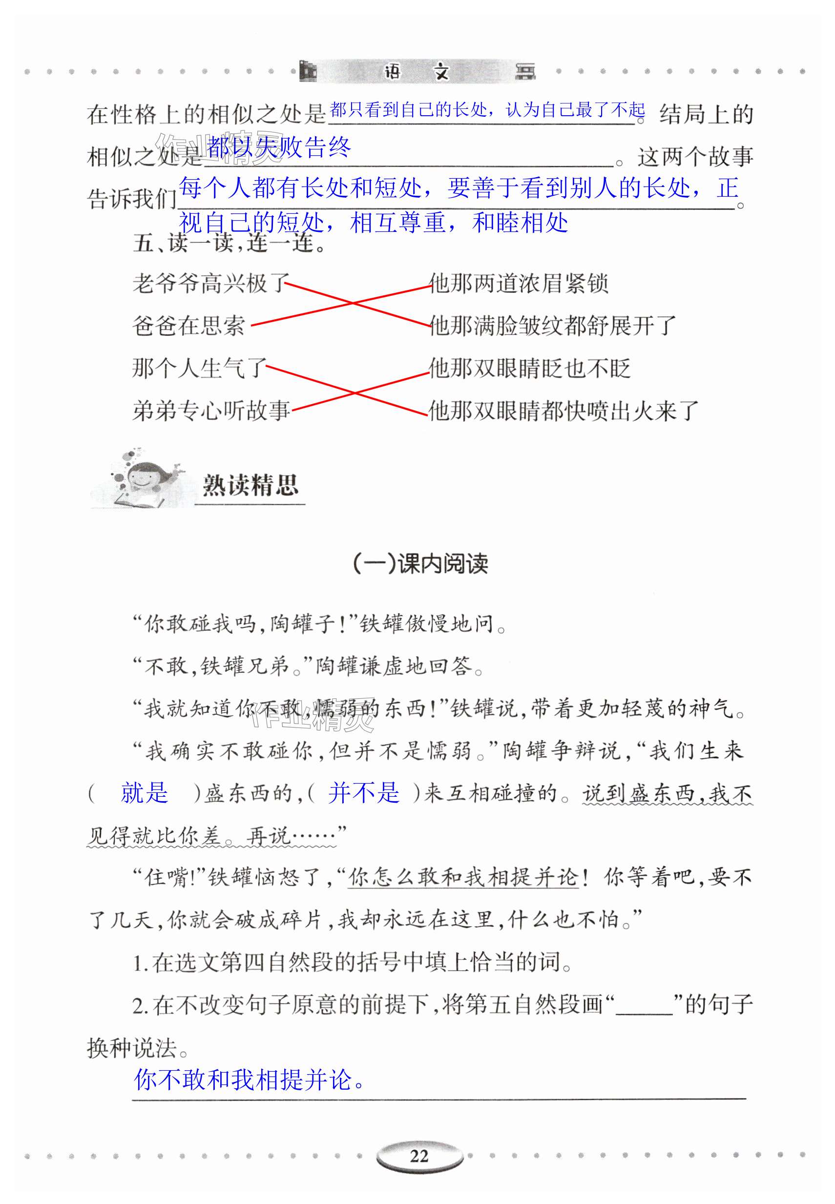 注:目前有些书本章节名称可能整理的还不是很完善,但都是按照顺序排列的,请同学们按照顺序仔细查找。练习册 2024年智慧学习导学练明天出版社三年级语文下册人教版 答案主要是用来给同学们做完题方便对答案用的,请勿直接抄袭。