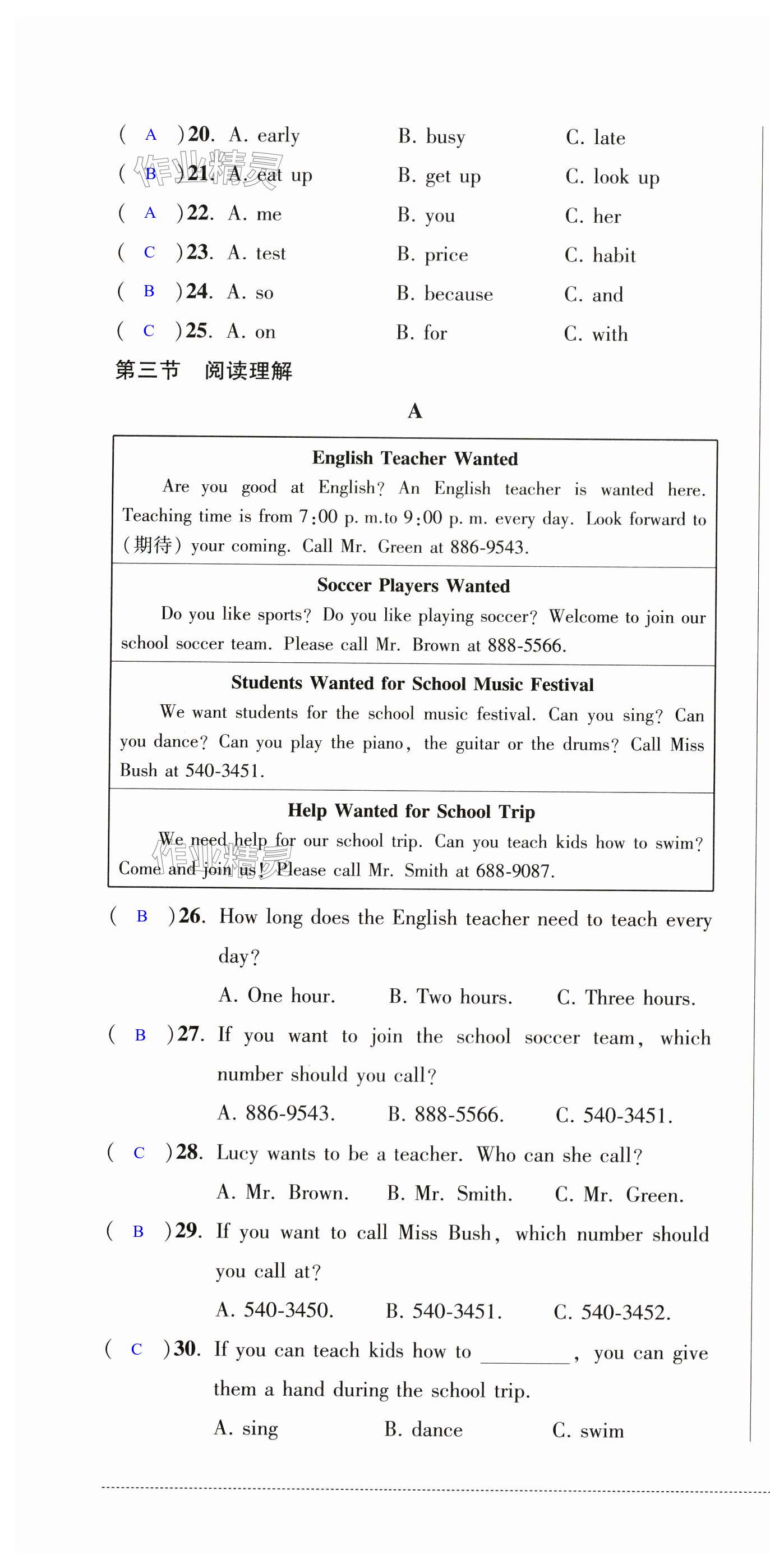 注:目前有些书本章节名称可能整理的还不是很完善,但都是按照顺序排列的,请同学们按照顺序仔细查找。练习册 2024年精练过关四川教育出版社七年级英语下册人教版 答案主要是用来给同学们做完题方便对答案用的,请勿直接抄袭。