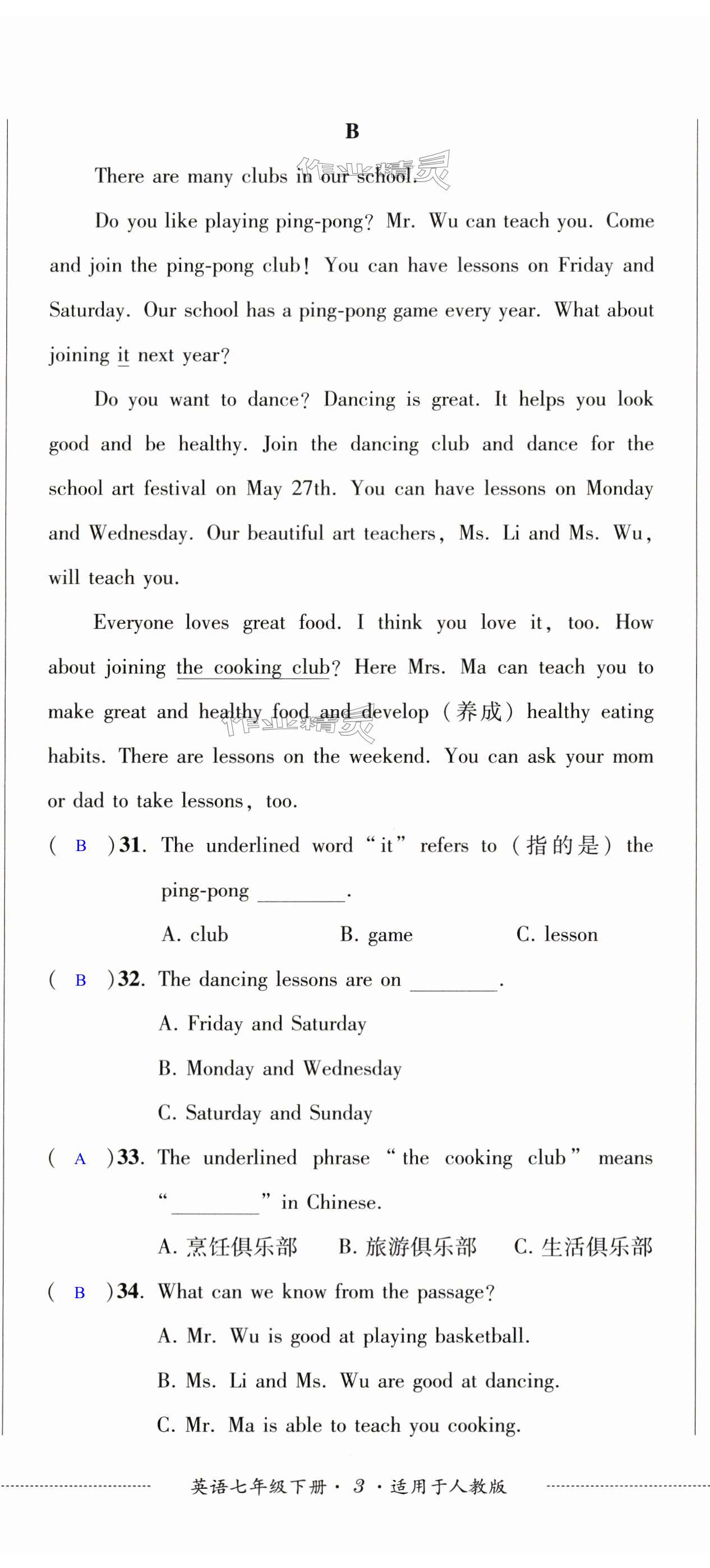 注:目前有些书本章节名称可能整理的还不是很完善,但都是按照顺序排列的,请同学们按照顺序仔细查找。练习册 2024年精练过关四川教育出版社七年级英语下册人教版 答案主要是用来给同学们做完题方便对答案用的,请勿直接抄袭。