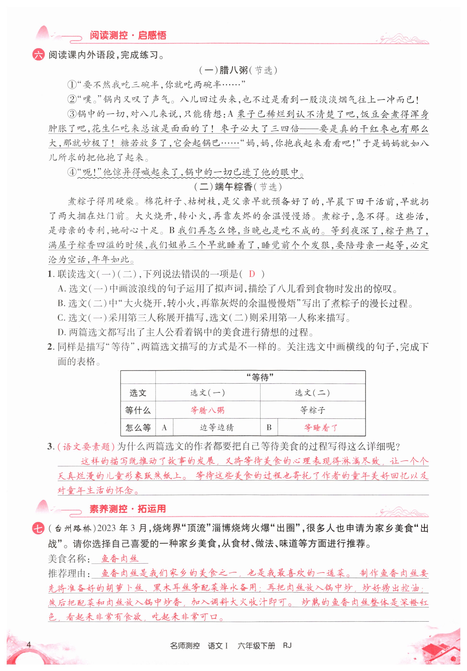 《2024年名师测控六年级语文下册人教版浙江专版》