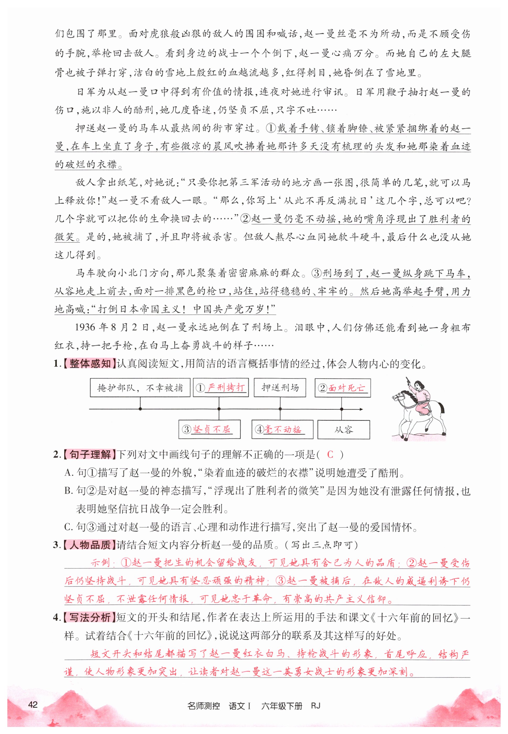 注:目前有些书本章节名称可能整理的还不是很完善,但都是按照顺序排列的,请同学们按照顺序仔细查找。练习册 2024年名师测控六年级语文下册人教版浙江专版 答案主要是用来给同学们做完题方便对答案用的,请勿直接抄袭。