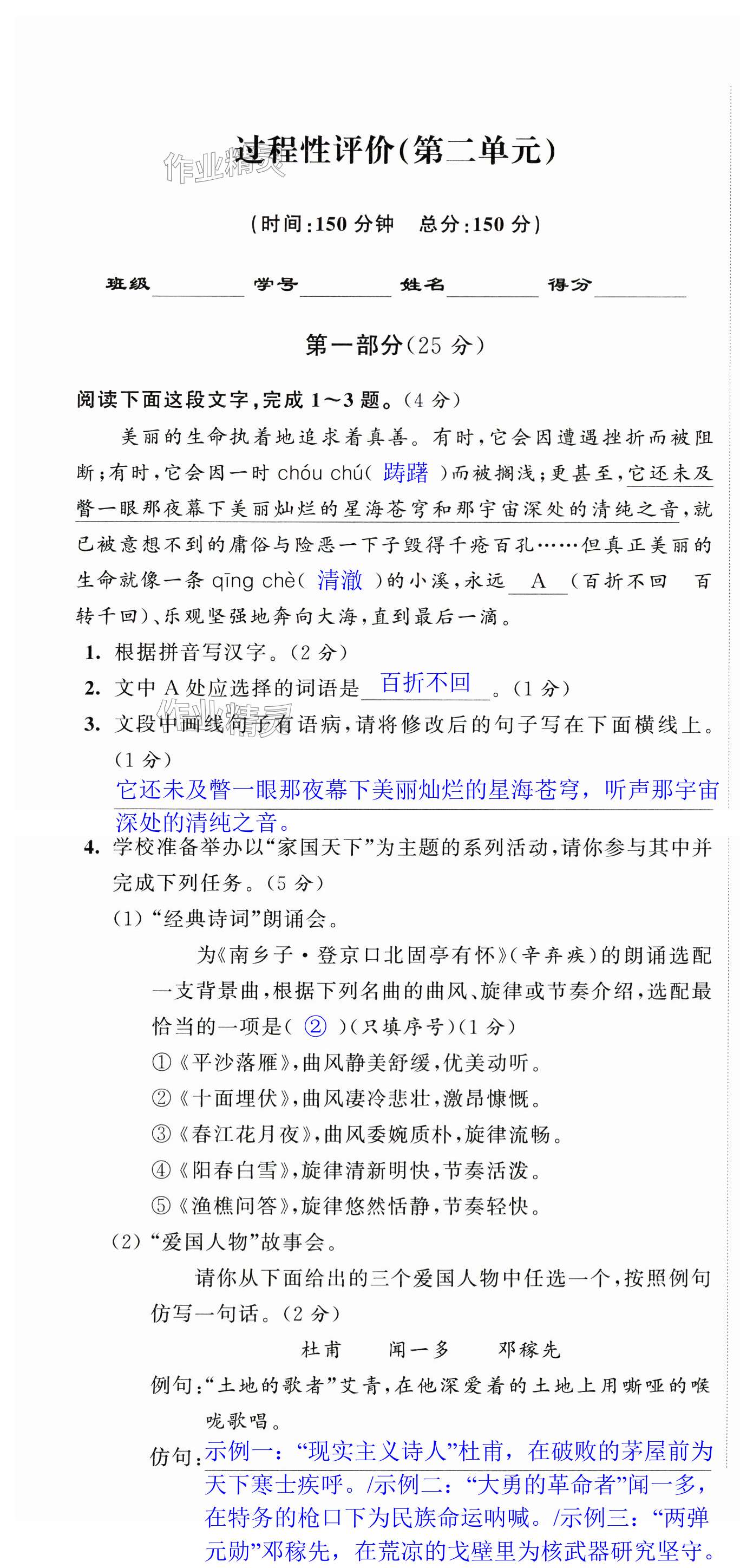 注:目前有些书本章节名称可能整理的还不是很完善,但都是按照顺序排列的,请同学们按照顺序仔细查找。练习册 2024年自我提升与评价九年级语文下册人教版 答案主要是用来给同学们做完题方便对答案用的,请勿直接抄袭。
