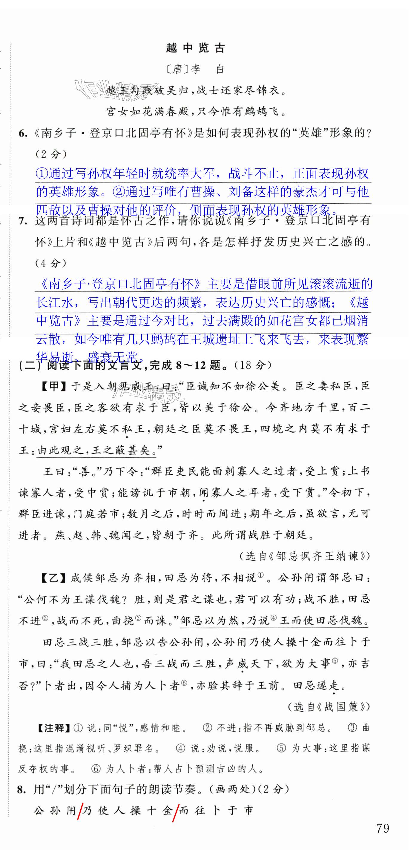 注:目前有些书本章节名称可能整理的还不是很完善,但都是按照顺序排列的,请同学们按照顺序仔细查找。练习册 2024年自我提升与评价九年级语文下册人教版 答案主要是用来给同学们做完题方便对答案用的,请勿直接抄袭。