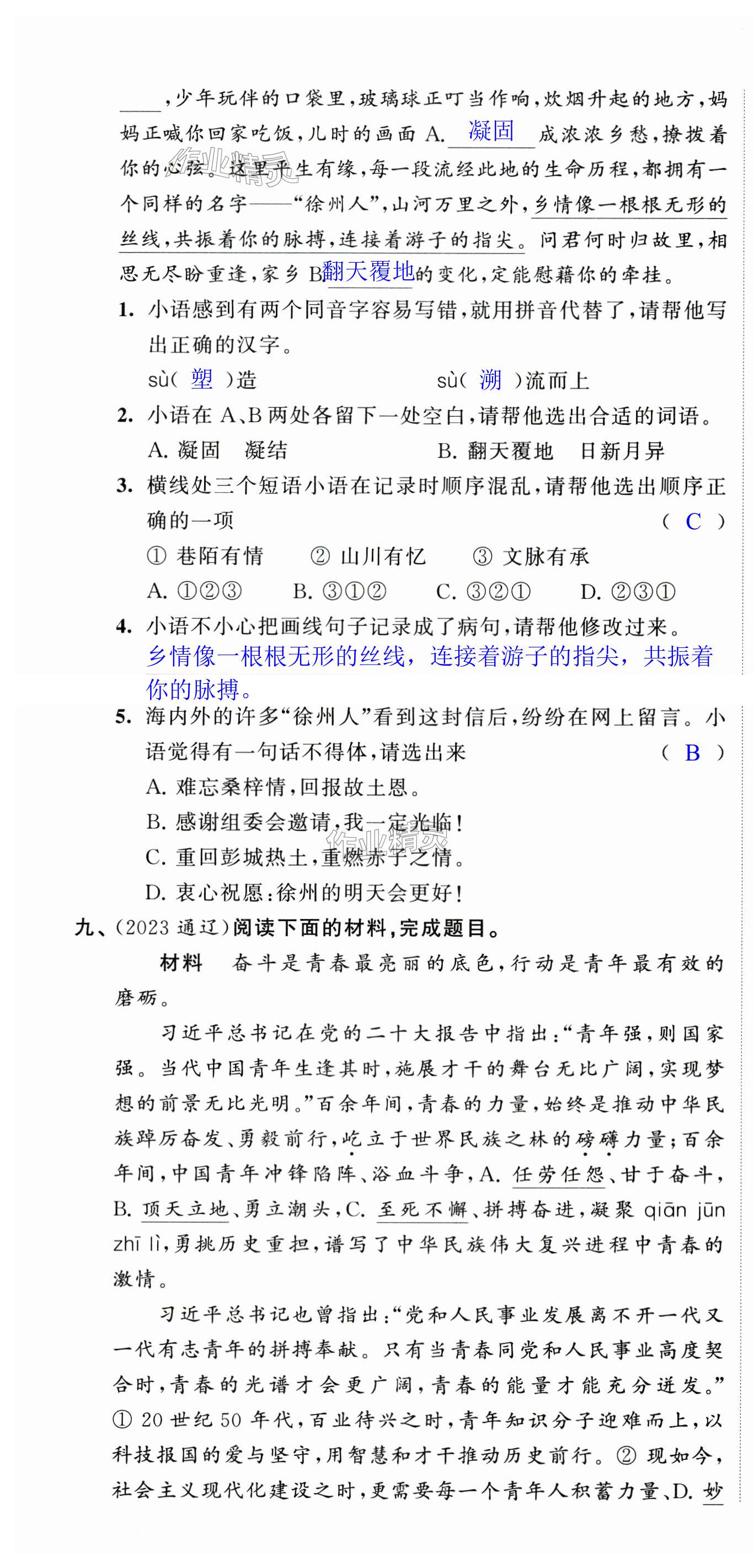 注:目前有些书本章节名称可能整理的还不是很完善,但都是按照顺序排列的,请同学们按照顺序仔细查找。练习册 2024年自我提升与评价九年级语文下册人教版 答案主要是用来给同学们做完题方便对答案用的,请勿直接抄袭。