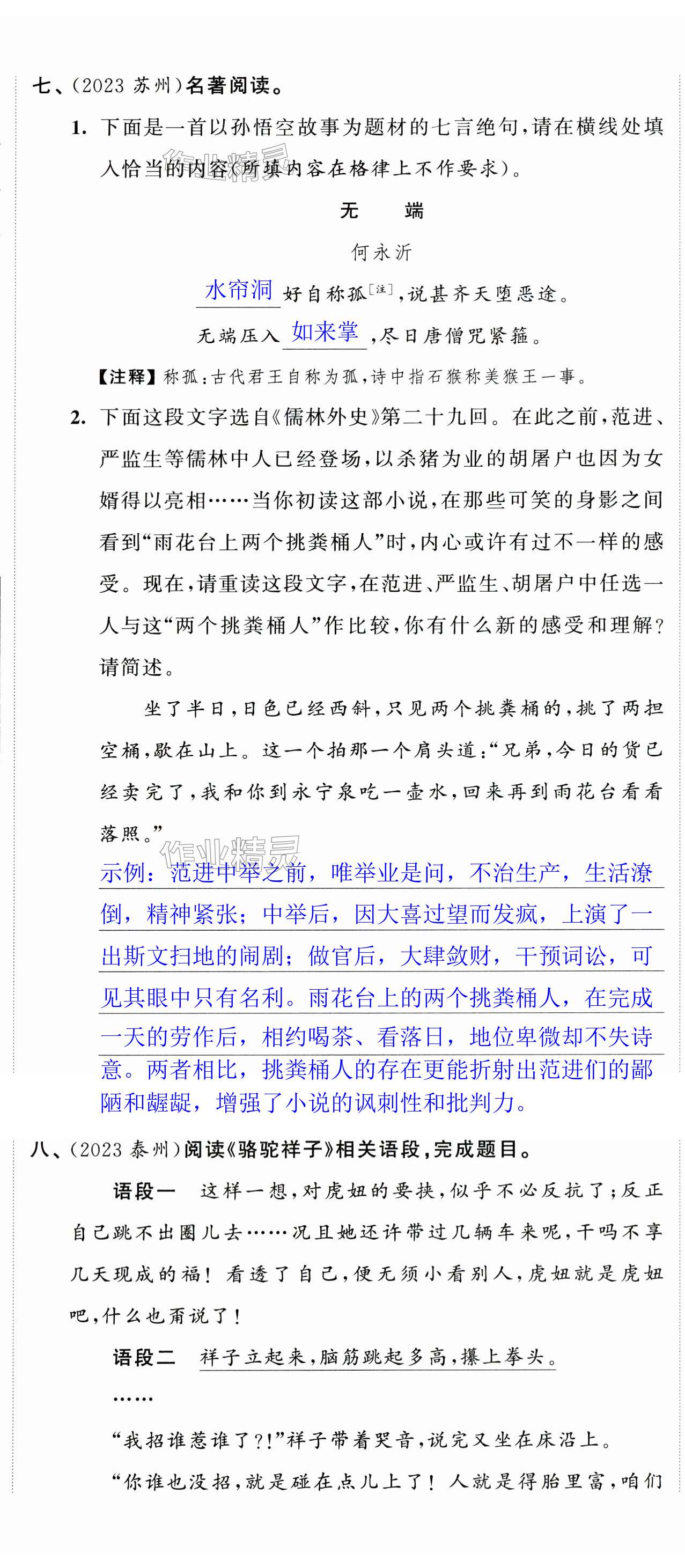 注:目前有些书本章节名称可能整理的还不是很完善,但都是按照顺序排列的,请同学们按照顺序仔细查找。练习册 2024年自我提升与评价九年级语文下册人教版 答案主要是用来给同学们做完题方便对答案用的,请勿直接抄袭。