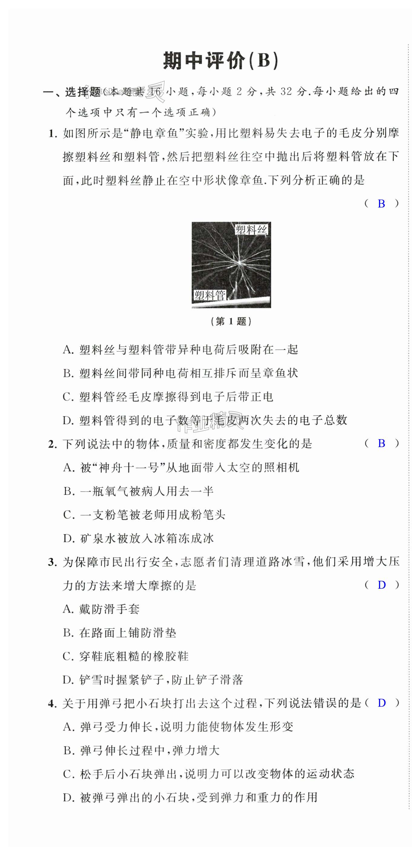 注:目前有些书本章节名称可能整理的还不是很完善,但都是按照顺序排列的,请同学们按照顺序仔细查找。练习册 2024年自我提升与评价八年级物理下册苏科版 答案主要是用来给同学们做完题方便对答案用的,请勿直接抄袭。
