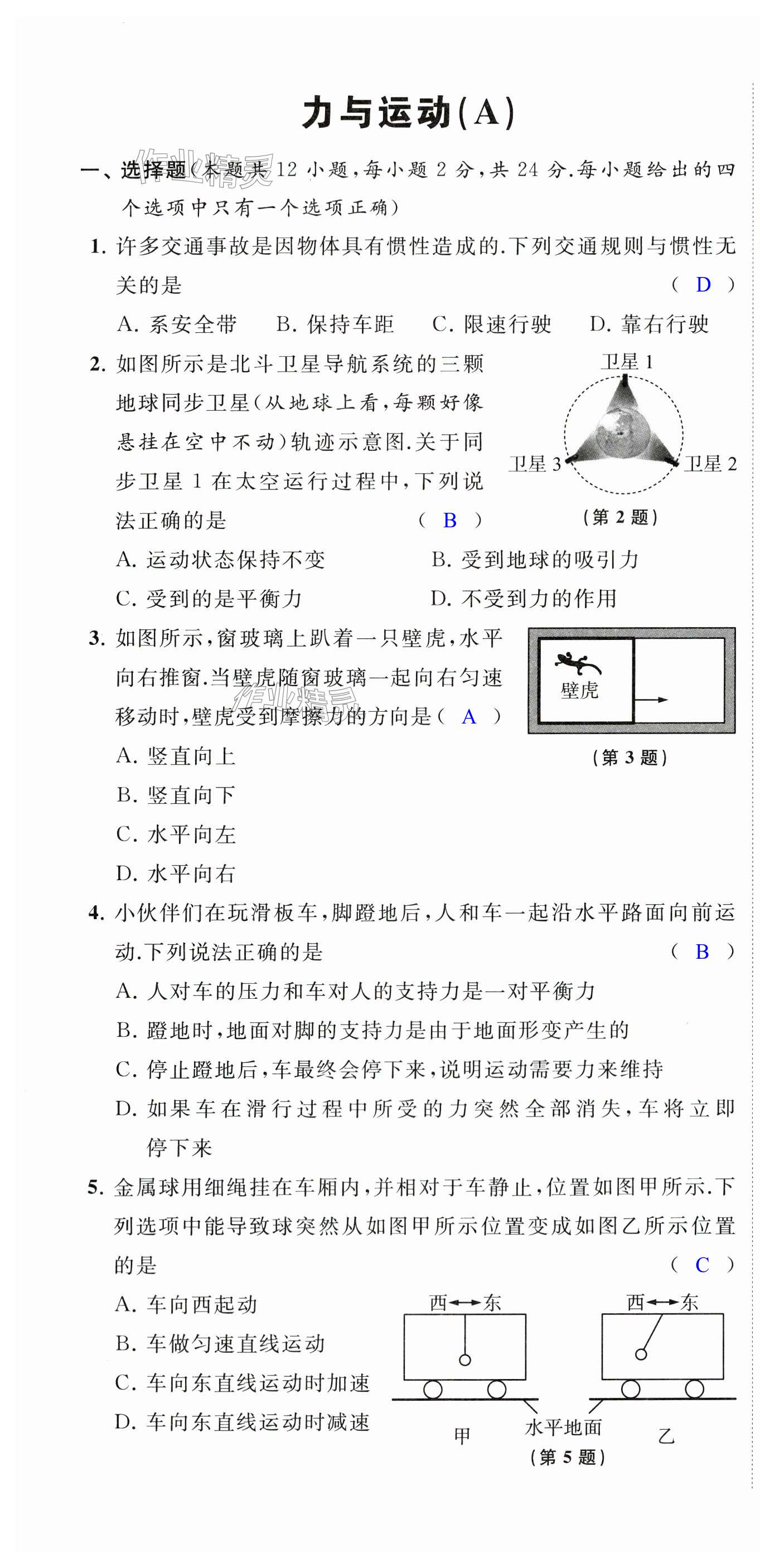 注:目前有些书本章节名称可能整理的还不是很完善,但都是按照顺序排列的,请同学们按照顺序仔细查找。练习册 2024年自我提升与评价八年级物理下册苏科版 答案主要是用来给同学们做完题方便对答案用的,请勿直接抄袭。