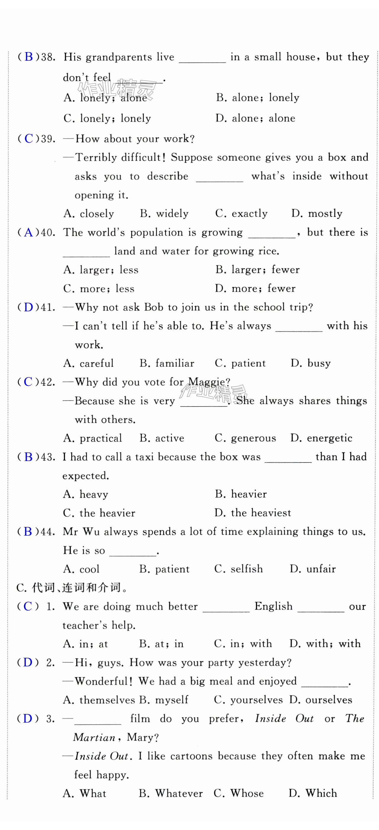 注:目前有些书本章节名称可能整理的还不是很完善,但都是按照顺序排列的,请同学们按照顺序仔细查找。练习册 2024年自我提升与评价九年级英语下册译林版 答案主要是用来给同学们做完题方便对答案用的,请勿直接抄袭。
