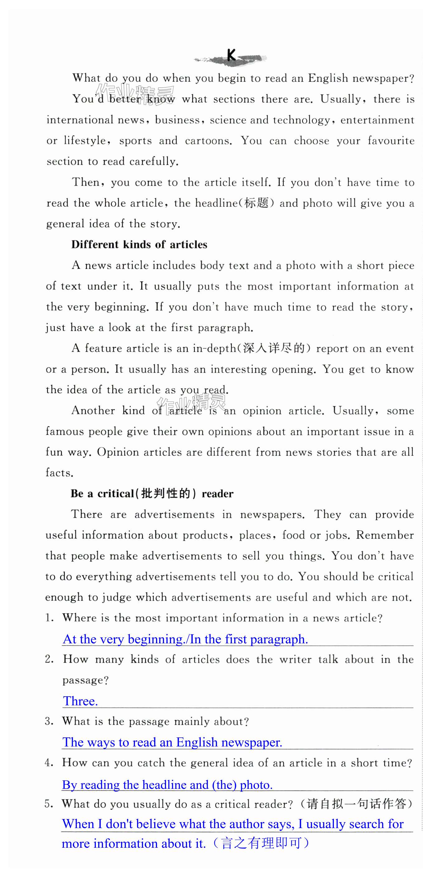 注:目前有些书本章节名称可能整理的还不是很完善,但都是按照顺序排列的,请同学们按照顺序仔细查找。练习册 2024年自我提升与评价九年级英语下册译林版 答案主要是用来给同学们做完题方便对答案用的,请勿直接抄袭。