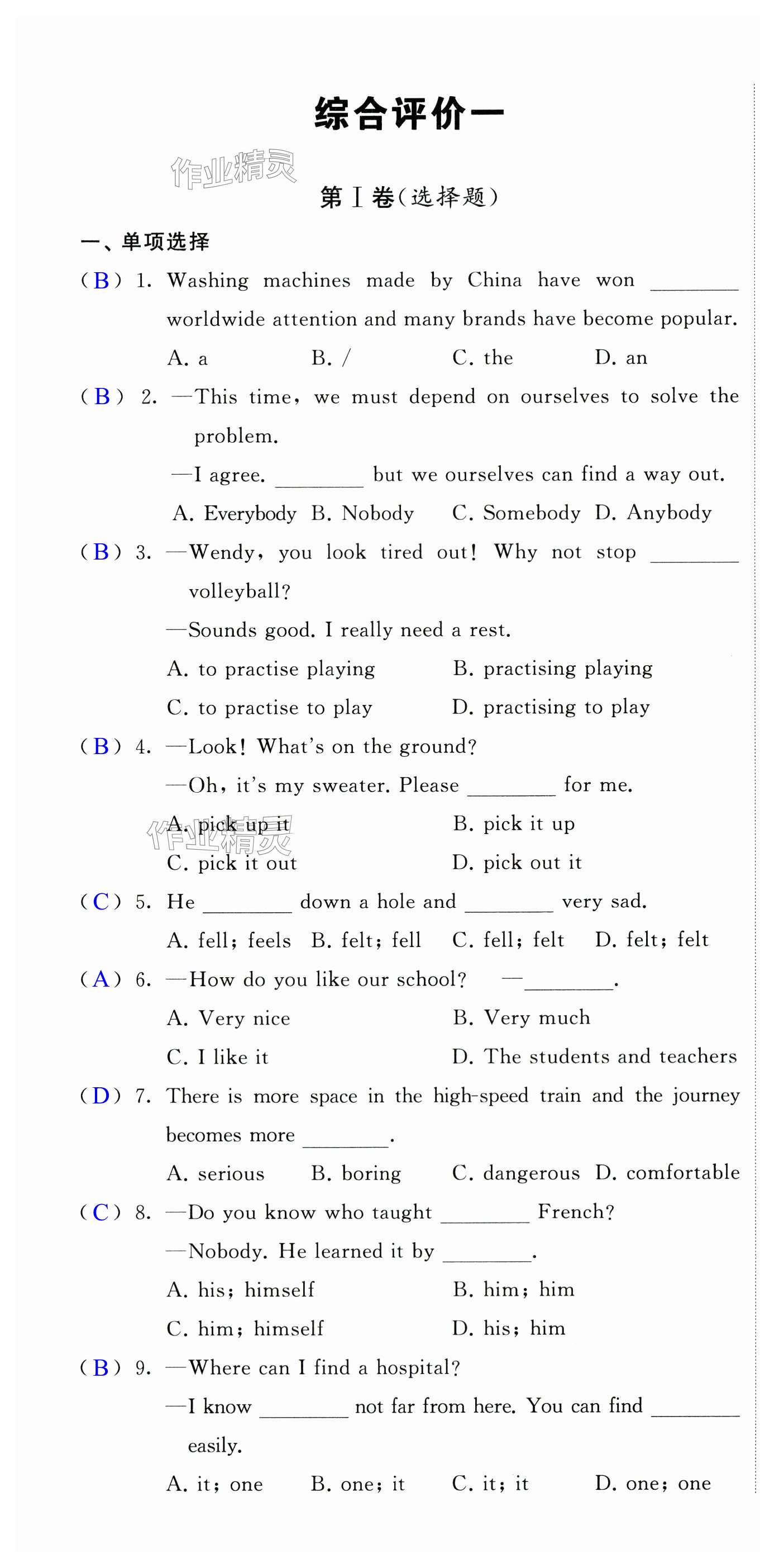 注:目前有些书本章节名称可能整理的还不是很完善,但都是按照顺序排列的,请同学们按照顺序仔细查找。练习册 2024年自我提升与评价九年级英语下册译林版 答案主要是用来给同学们做完题方便对答案用的,请勿直接抄袭。