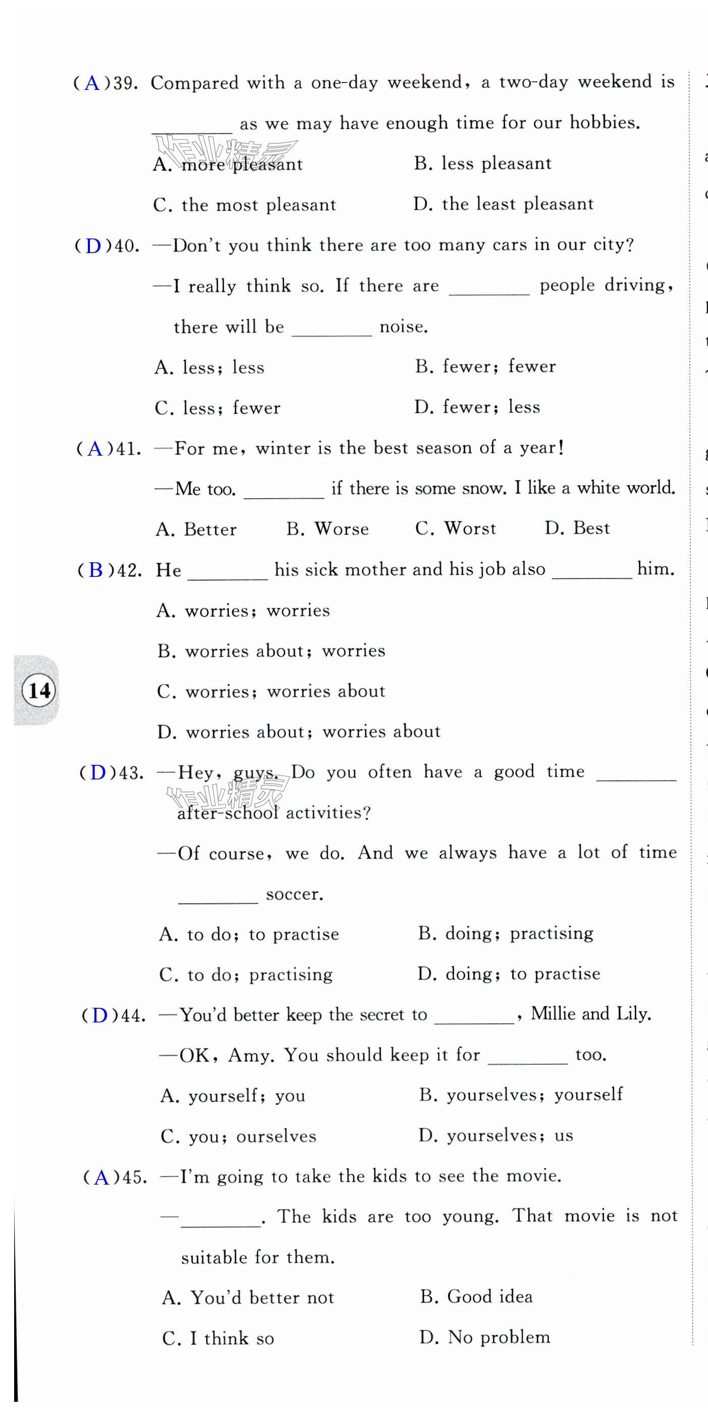 注:目前有些书本章节名称可能整理的还不是很完善,但都是按照顺序排列的,请同学们按照顺序仔细查找。练习册 2024年自我提升与评价九年级英语下册译林版 答案主要是用来给同学们做完题方便对答案用的,请勿直接抄袭。