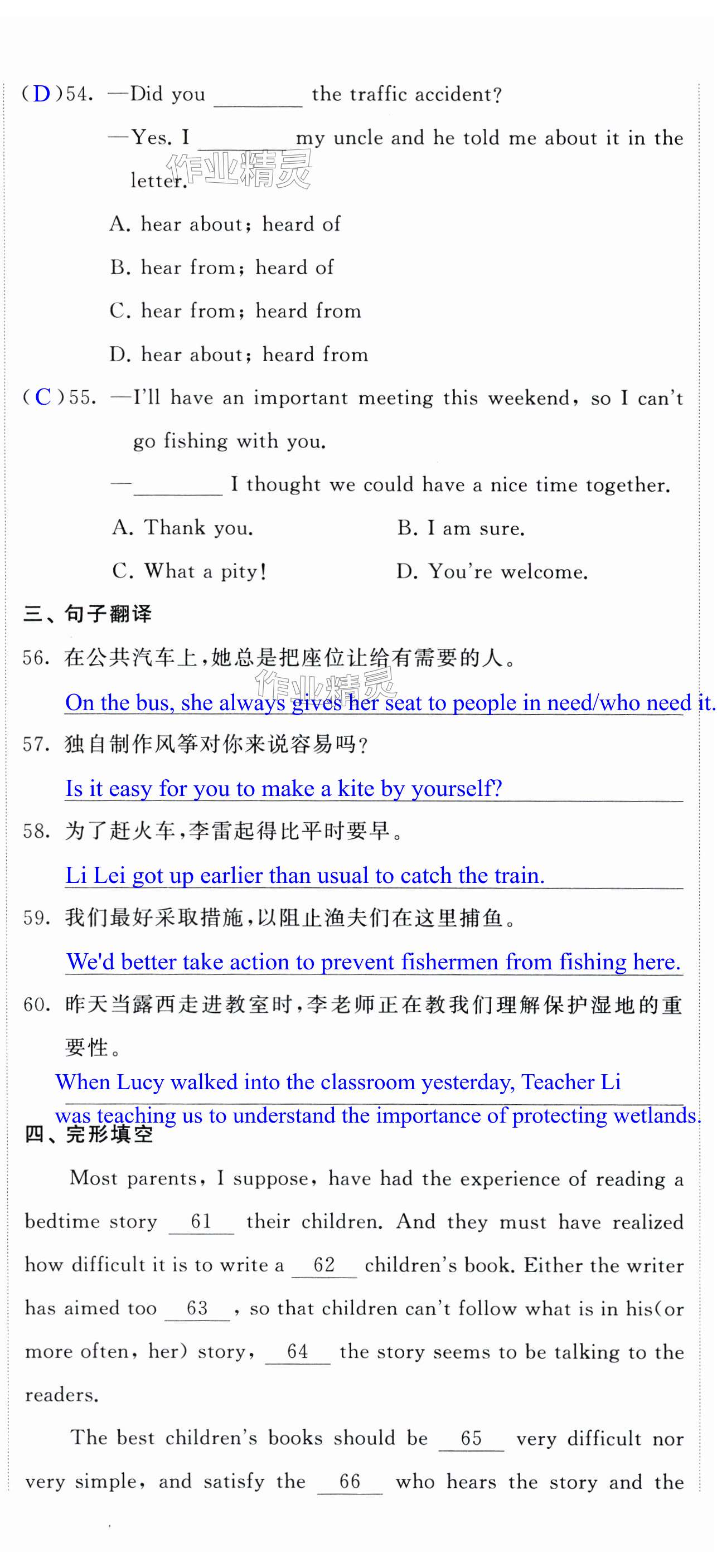 注:目前有些书本章节名称可能整理的还不是很完善,但都是按照顺序排列的,请同学们按照顺序仔细查找。练习册 2024年自我提升与评价九年级英语下册译林版 答案主要是用来给同学们做完题方便对答案用的,请勿直接抄袭。