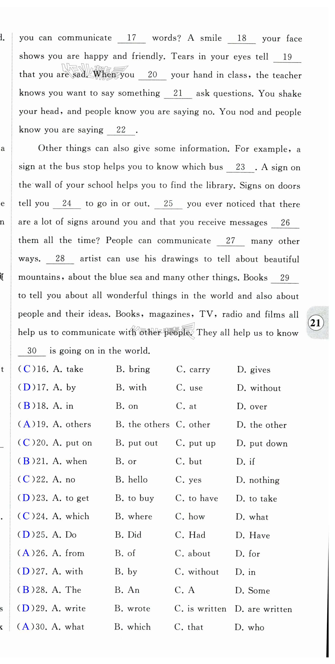 注:目前有些书本章节名称可能整理的还不是很完善,但都是按照顺序排列的,请同学们按照顺序仔细查找。练习册 2024年自我提升与评价九年级英语下册译林版 答案主要是用来给同学们做完题方便对答案用的,请勿直接抄袭。