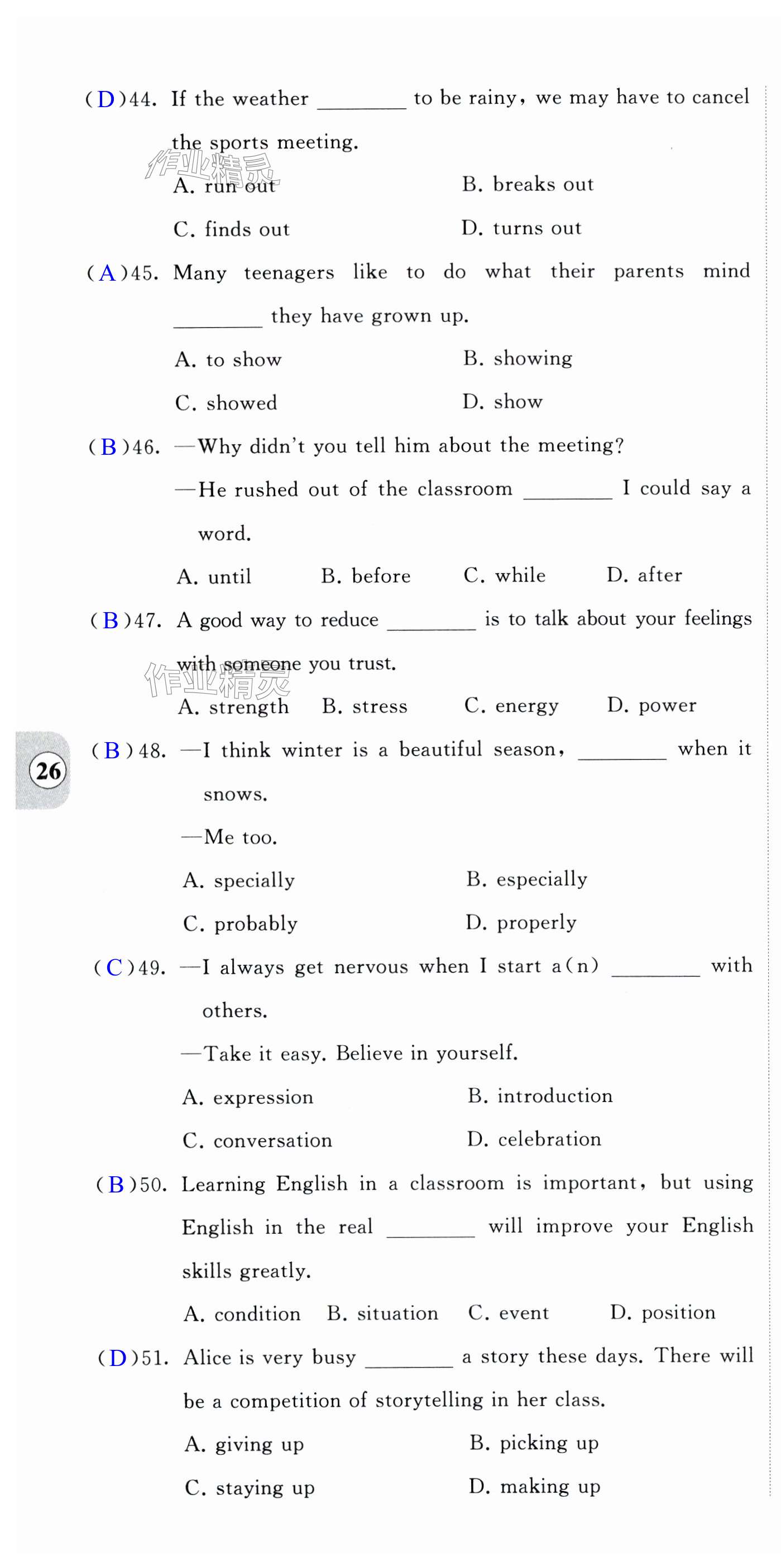 注:目前有些书本章节名称可能整理的还不是很完善,但都是按照顺序排列的,请同学们按照顺序仔细查找。练习册 2024年自我提升与评价九年级英语下册译林版 答案主要是用来给同学们做完题方便对答案用的,请勿直接抄袭。