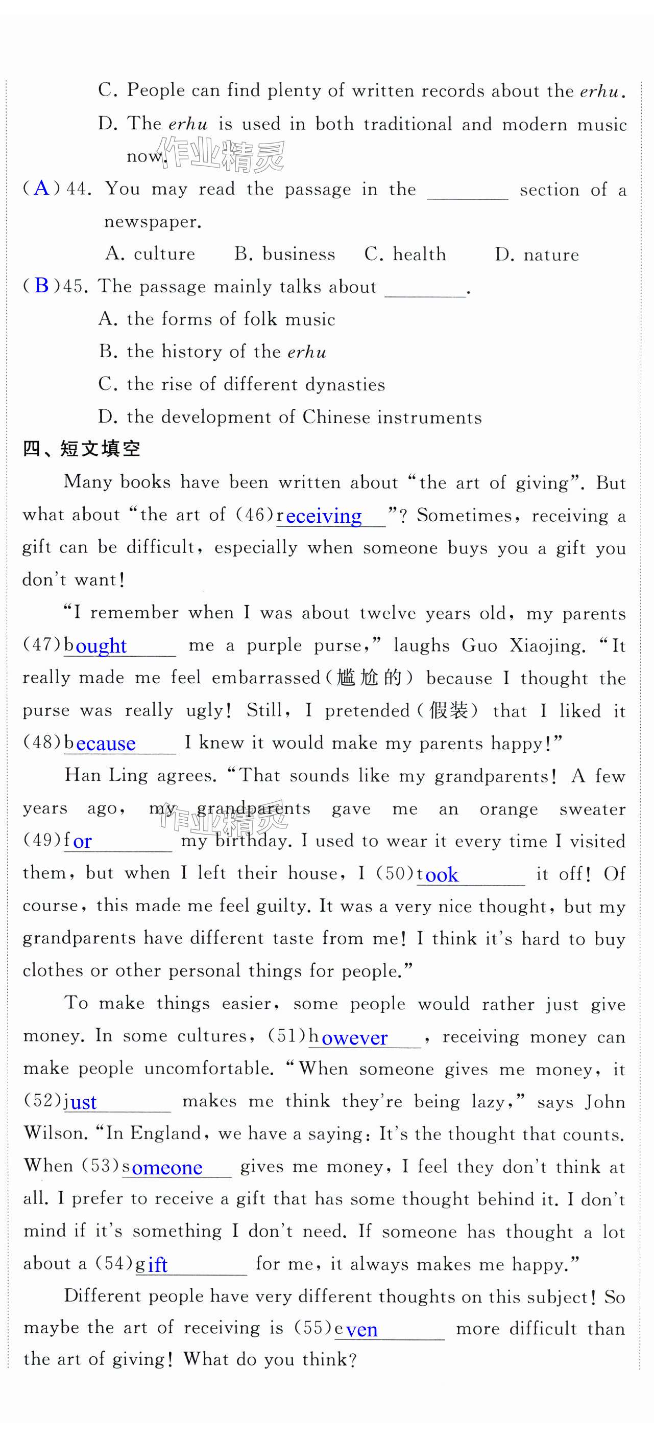 注:目前有些书本章节名称可能整理的还不是很完善,但都是按照顺序排列的,请同学们按照顺序仔细查找。练习册 2024年自我提升与评价九年级英语下册译林版 答案主要是用来给同学们做完题方便对答案用的,请勿直接抄袭。