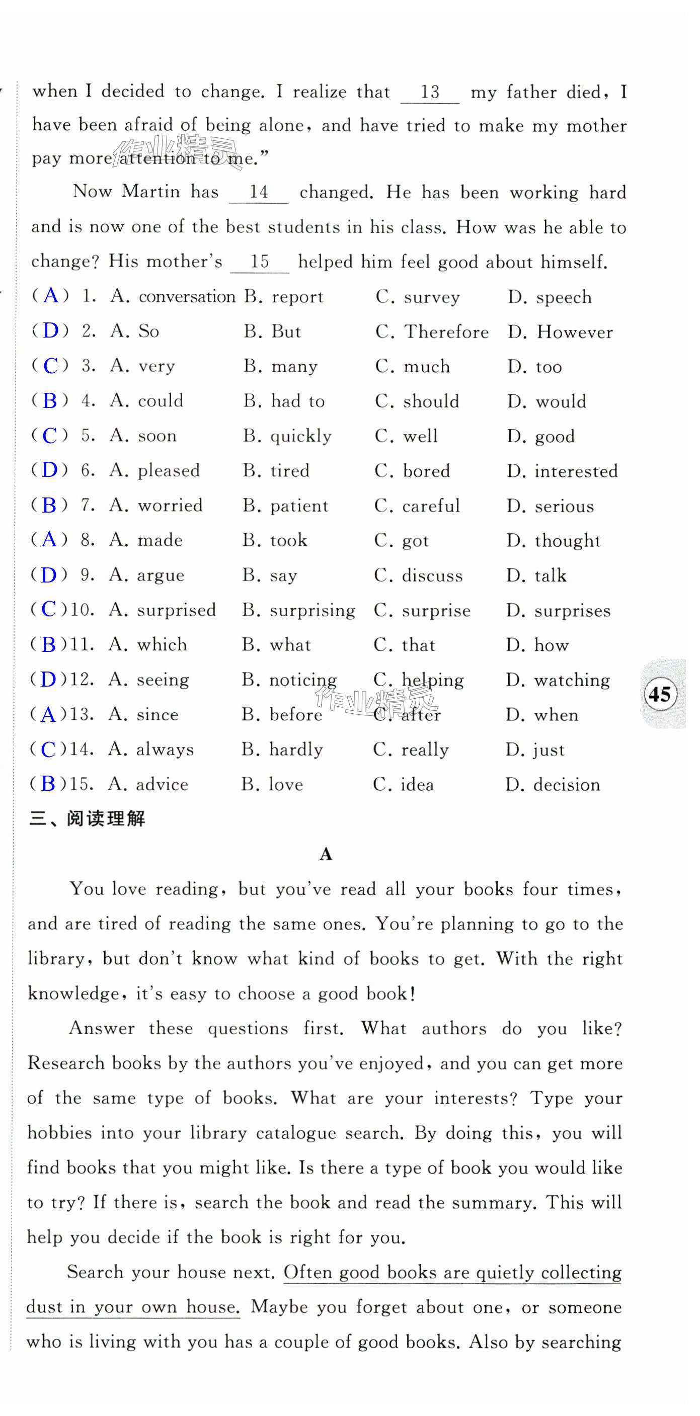 注:目前有些书本章节名称可能整理的还不是很完善,但都是按照顺序排列的,请同学们按照顺序仔细查找。练习册 2024年自我提升与评价八年级英语下册译林版 答案主要是用来给同学们做完题方便对答案用的,请勿直接抄袭。
