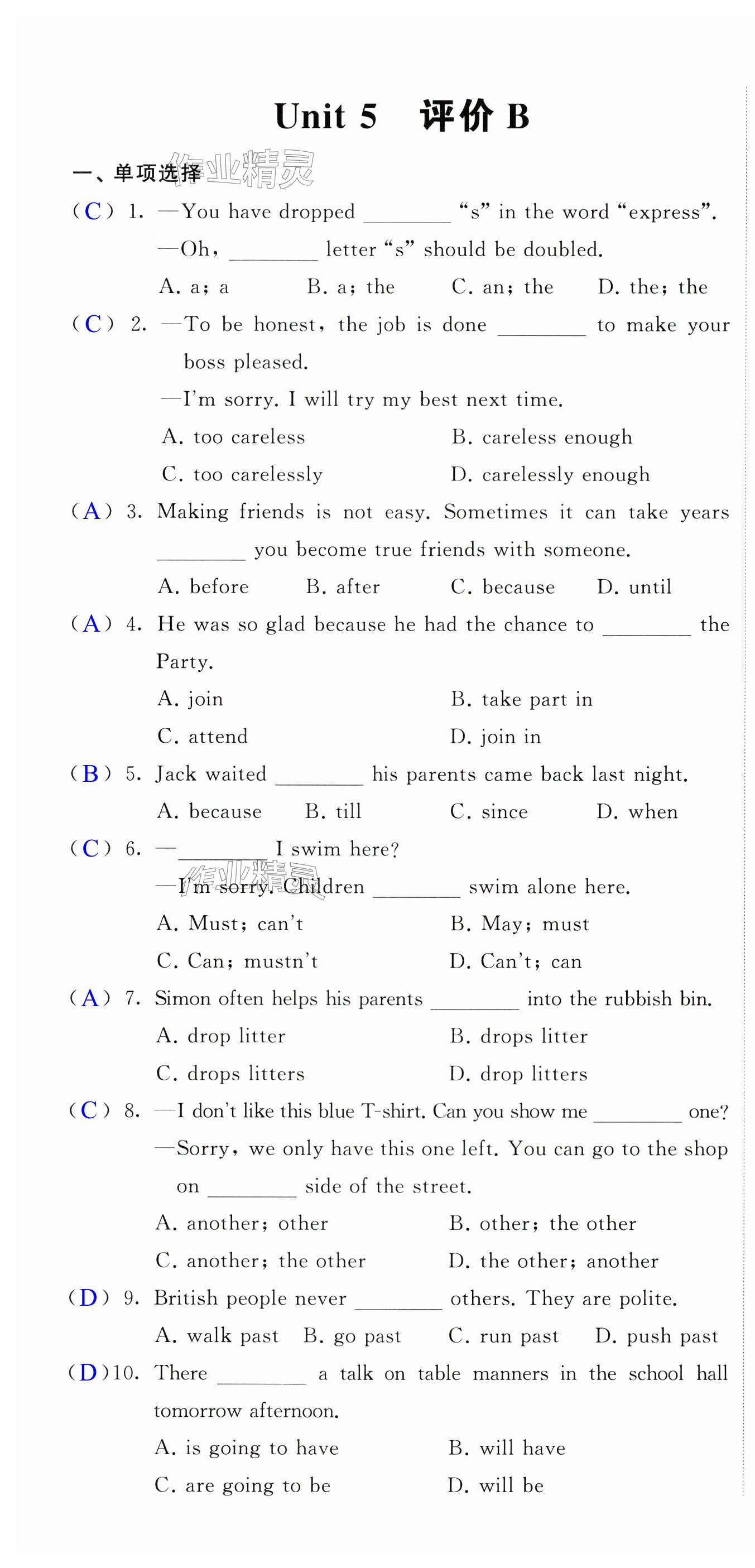 注:目前有些书本章节名称可能整理的还不是很完善,但都是按照顺序排列的,请同学们按照顺序仔细查找。练习册 2024年自我提升与评价八年级英语下册译林版 答案主要是用来给同学们做完题方便对答案用的,请勿直接抄袭。