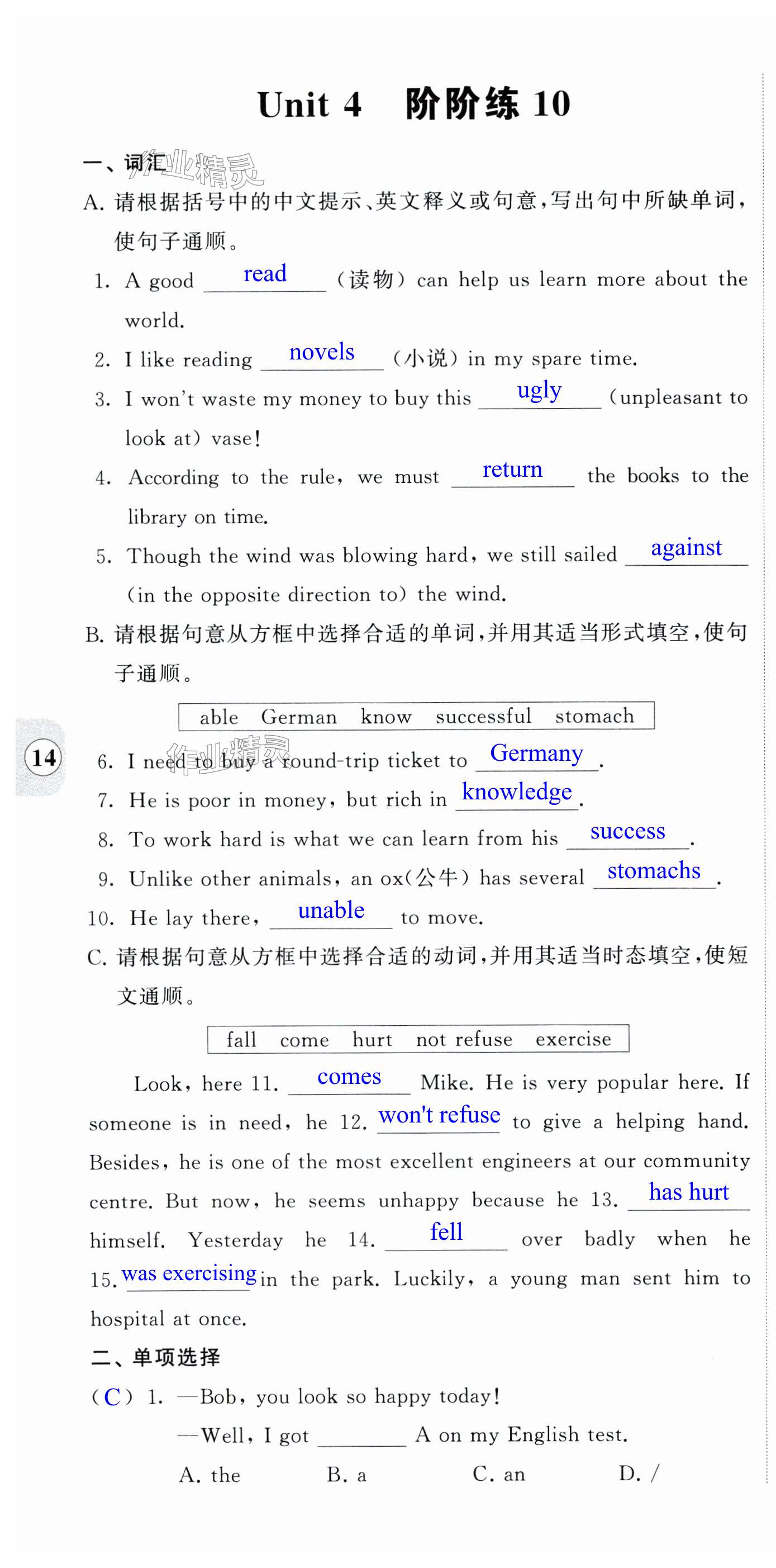 注:目前有些书本章节名称可能整理的还不是很完善,但都是按照顺序排列的,请同学们按照顺序仔细查找。练习册 2024年自我提升与评价八年级英语下册译林版 答案主要是用来给同学们做完题方便对答案用的,请勿直接抄袭。