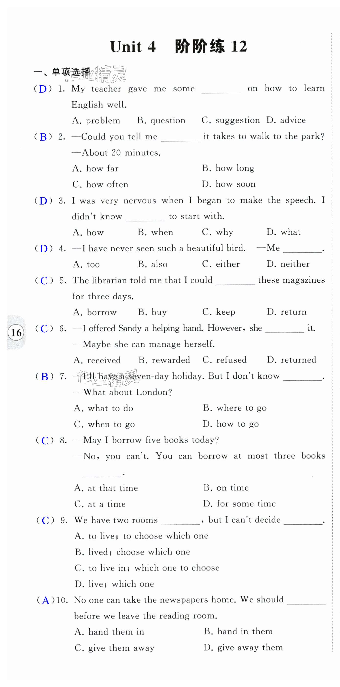 注:目前有些书本章节名称可能整理的还不是很完善,但都是按照顺序排列的,请同学们按照顺序仔细查找。练习册 2024年自我提升与评价八年级英语下册译林版 答案主要是用来给同学们做完题方便对答案用的,请勿直接抄袭。