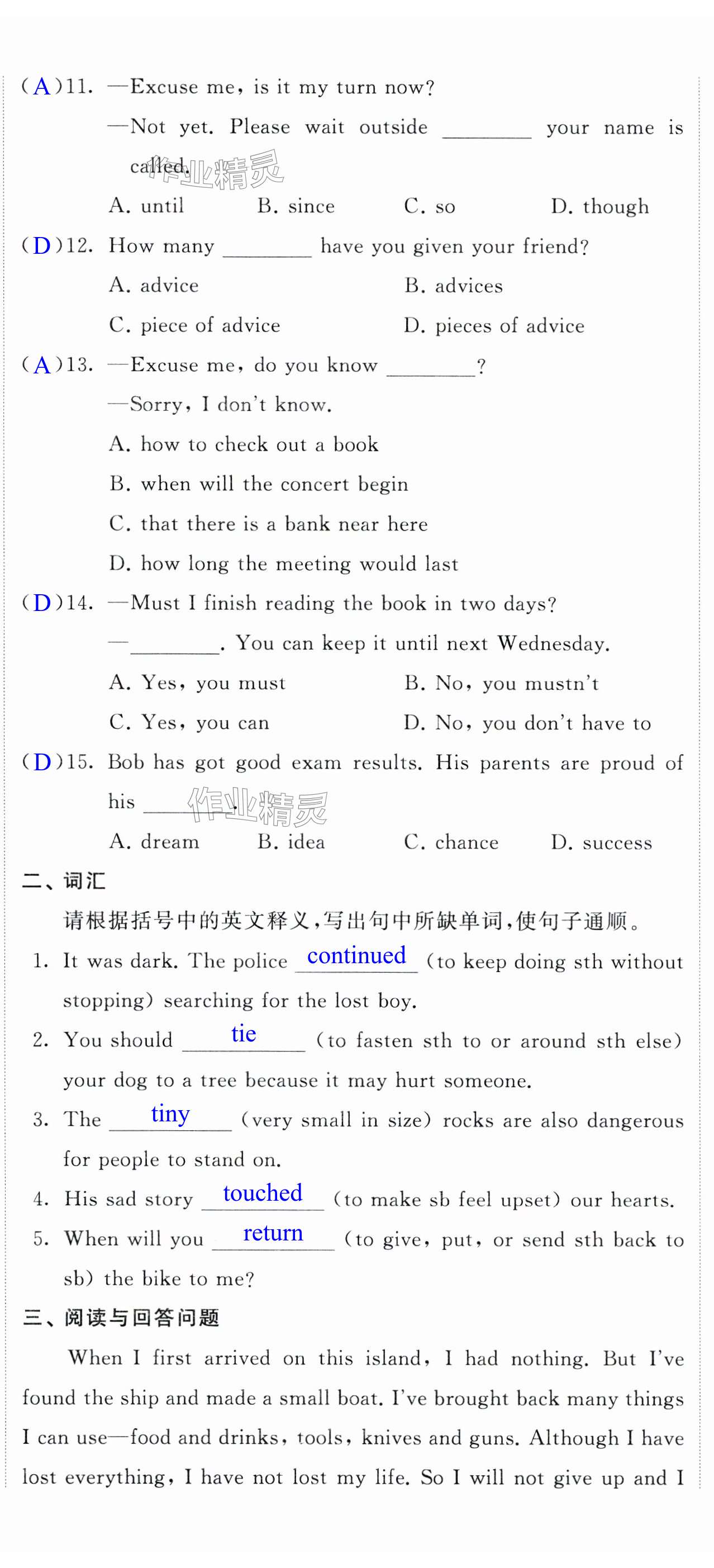 注:目前有些书本章节名称可能整理的还不是很完善,但都是按照顺序排列的,请同学们按照顺序仔细查找。练习册 2024年自我提升与评价八年级英语下册译林版 答案主要是用来给同学们做完题方便对答案用的,请勿直接抄袭。