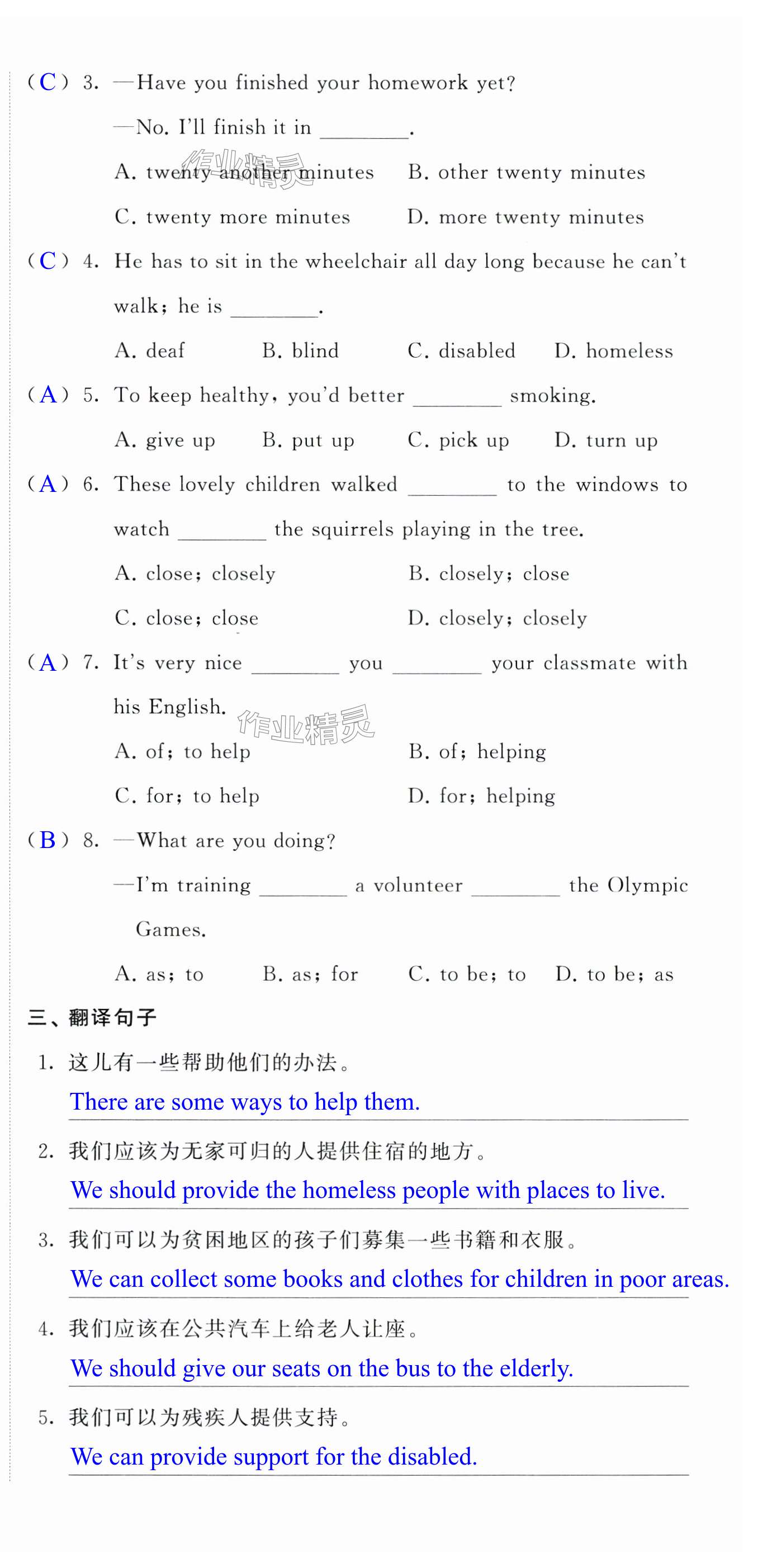 注:目前有些书本章节名称可能整理的还不是很完善,但都是按照顺序排列的,请同学们按照顺序仔细查找。练习册 2024年自我提升与评价八年级英语下册译林版 答案主要是用来给同学们做完题方便对答案用的,请勿直接抄袭。