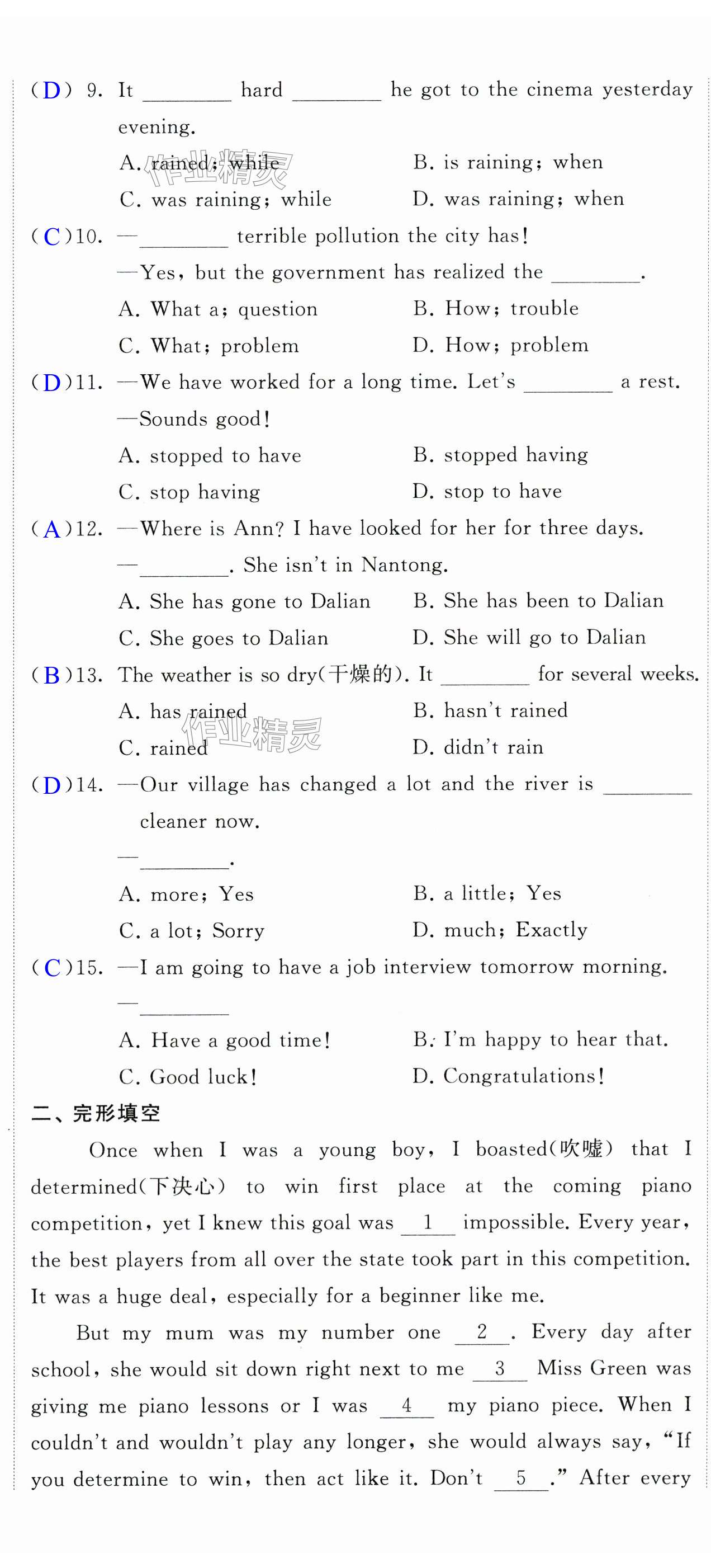 注:目前有些书本章节名称可能整理的还不是很完善,但都是按照顺序排列的,请同学们按照顺序仔细查找。练习册 2024年自我提升与评价八年级英语下册译林版 答案主要是用来给同学们做完题方便对答案用的,请勿直接抄袭。